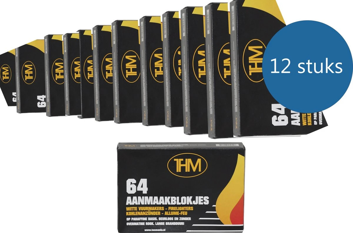 Allume-feu pour barbecue – Allume-feu pour BBQ – Allume-feu THM paraffine blanche 64 pièces dans un pack