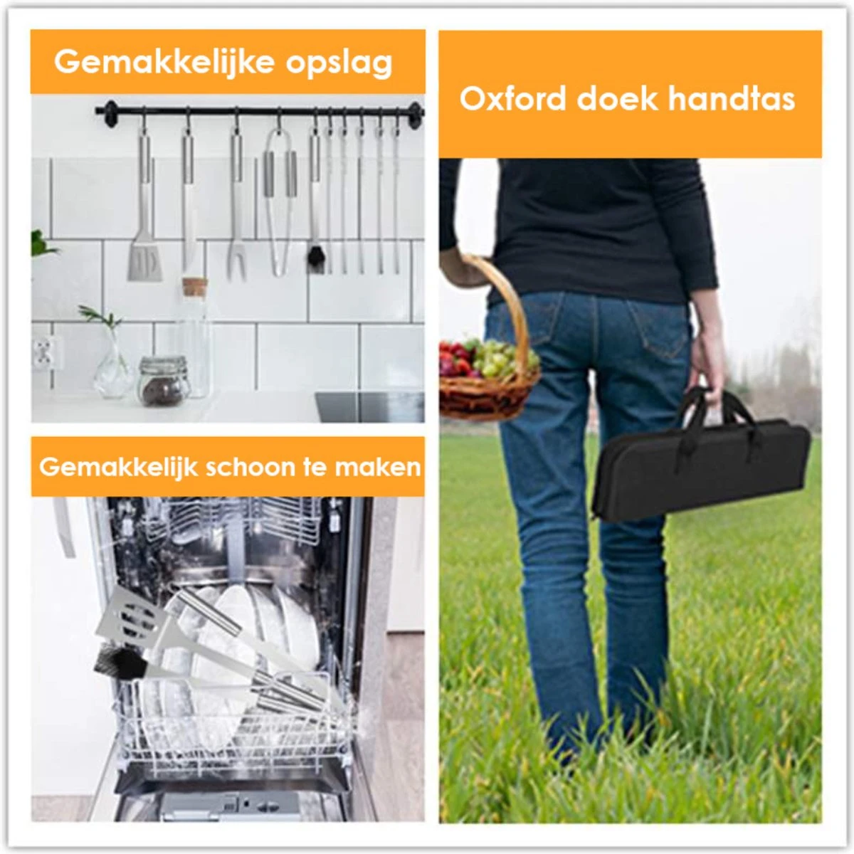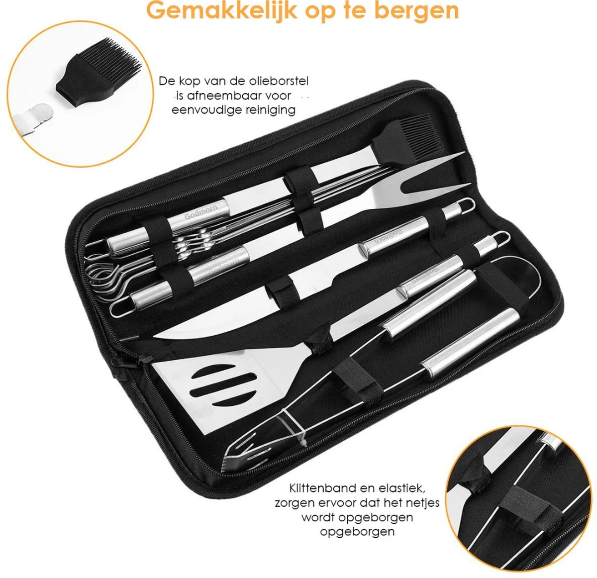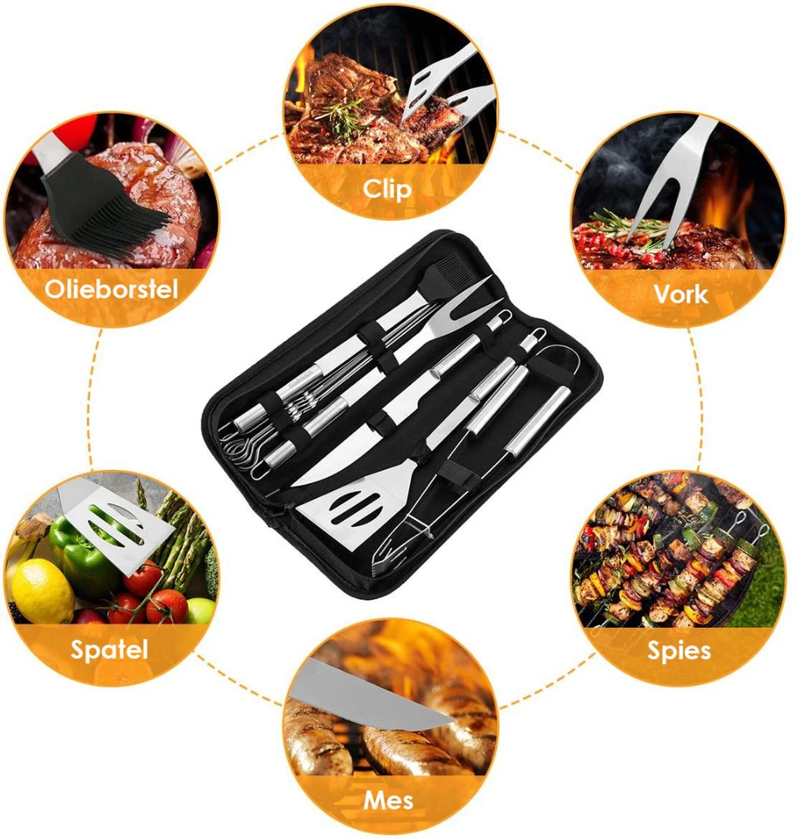 Le temps est de nouveau beau et c’est l’heure d’unbarbecue ! En plus debarbecue avez-vous besoin de beaucoup plus de choses pour bien manger. Avec leBBQaccessoires parBoulon vous avez tout pour offrir un délicieux BBQ . Immédiatementfourchette ,couteau ,pinces ,brosse etbrochettes avez-vous tout à la maison! Ilmatériel est facilebeau faire et avec lesac de rangement emportez-le partout avec vous ! Le matériel estacier inoxydable à cause de quoi ilrésistant à la chaleur est. Vous ne serez pas dérangé après le BBQbrûlédes doigts .