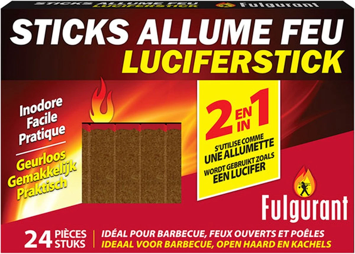• Allumette : fonctionne comme une allumette, allumez le bâton Fulgurant à l’aide de la bande scratch sur le côté de la boîte.