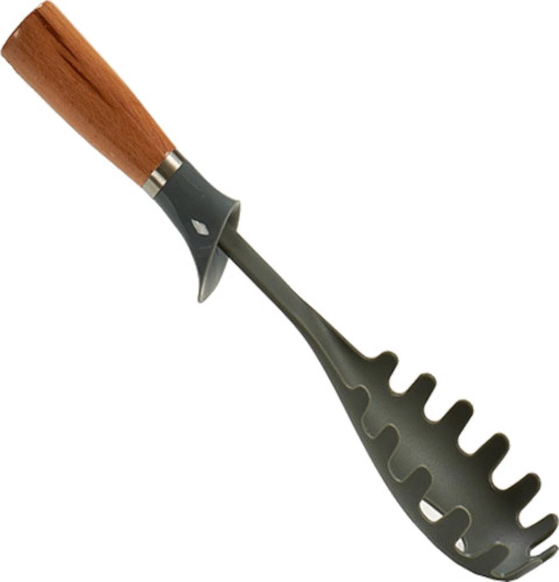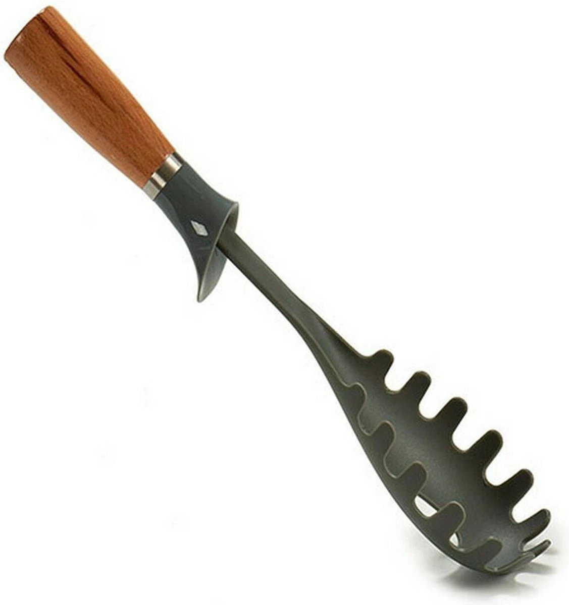 Cette élégante cuillère à spaghetti ne devrait pas manquer dans votre cuisine. Les spaghettis se collent entre les dents de la cuillère, vous pouvez donc les mettre facilement dans votre assiette. De plus, vous pouvez mesurer exactement une portion de spaghetti avec le trou au centre de la cuillère. hyper pratique !