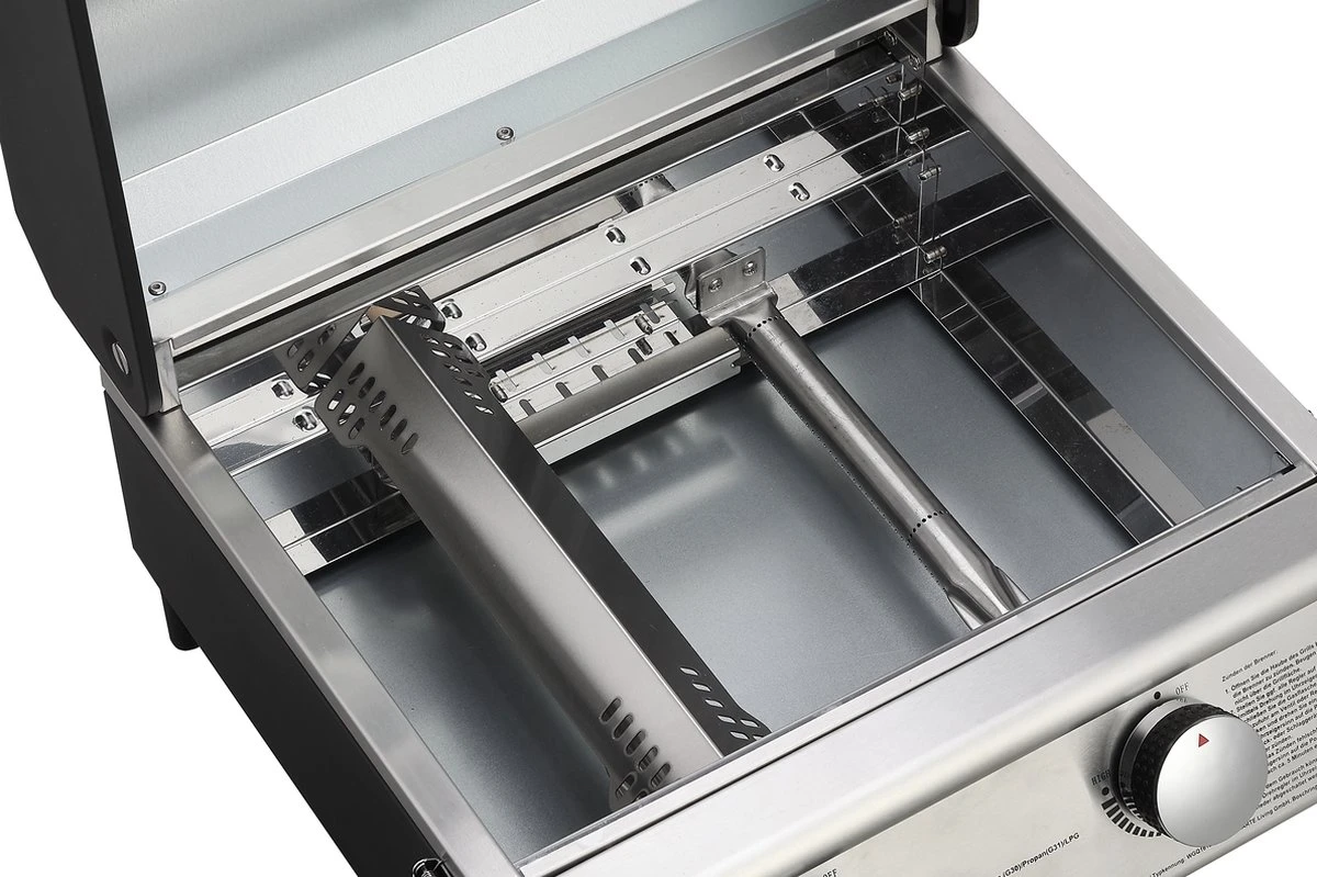 Le barbecue à gaz ne laisse rien à désirer et convainc par son design élégant. Ce gril est le compagnon idéal pour tous ceux qui ne veulent pas manquer le plaisir de griller en déplacement. Vous pouvez l’utiliser pour organiser de manière flexible votre temps libre, que ce soit en camping, en excursion ou en voyage.