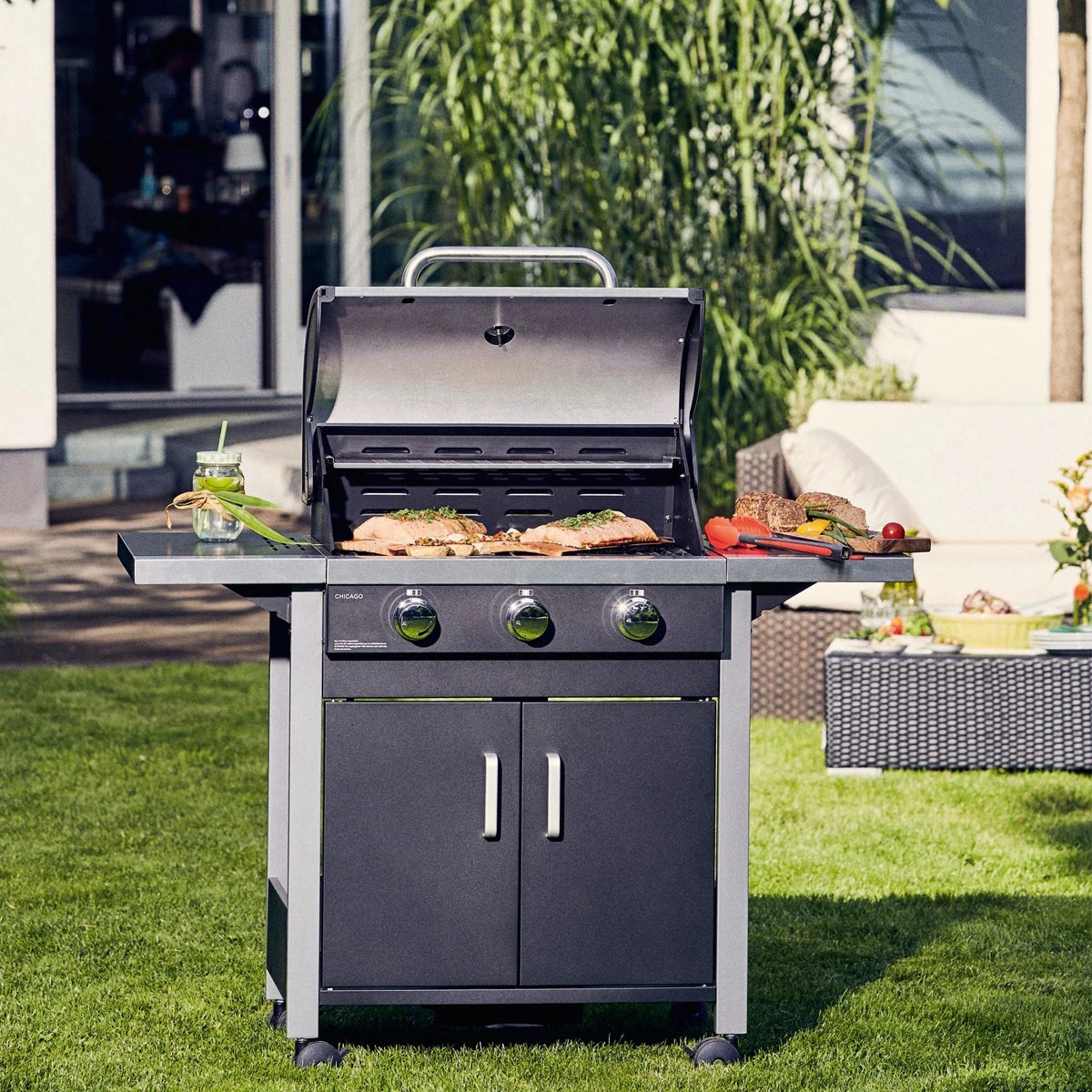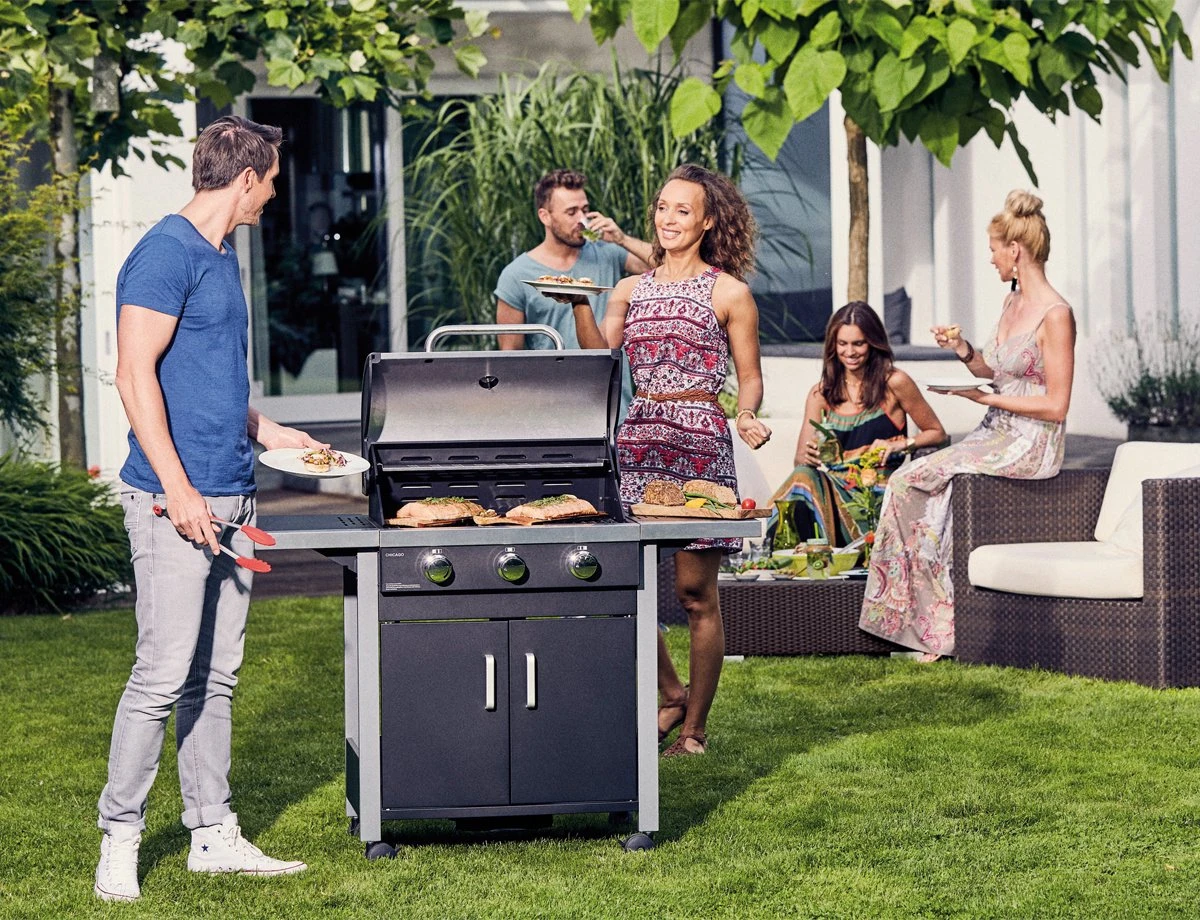 Le gril à gaz Enders Chicago 3 est un gril spacieux qui est parfait pour le jardin. Grâce aux trois brûleurs en acier inoxydable réglables en continu, à la hotte en acier inoxydable et aux grilles de gril de haute qualité, vous obtenez des résultats de barbecue parfaits avec l’ Enders Chicago 3, à la fois avec grillage direct et indirect, grâce à une répartition efficace de la chaleur. L’ Enders Chicago 3 est doté de quatre roues robustes, ce qui facilite le déplacement du barbecue. Le nettoyage de l’Ender Chicago 3 est également un jeu d’enfant grâce au tiroir à graisse intégré et est simple et rapide. Le Chicago peut également marquer 3 points en termes de sécurité – avec un allumage piézo-électrique sans batterie et des couvercles de flamme, vous êtes assuré d’une expérience de barbecue en toute sécurité. Dans le meuble bas spacieux, vous trouverez non seulement vos accessoires de barbecue, mais également une bouteille de gaz de 5 kg. Avec l’ Enders Chicago 3, vous pouvez déguster des steaks parfaitement grillés et du matériel de barbecue solide – et cela pour un rapport qualité-prix imbattable.