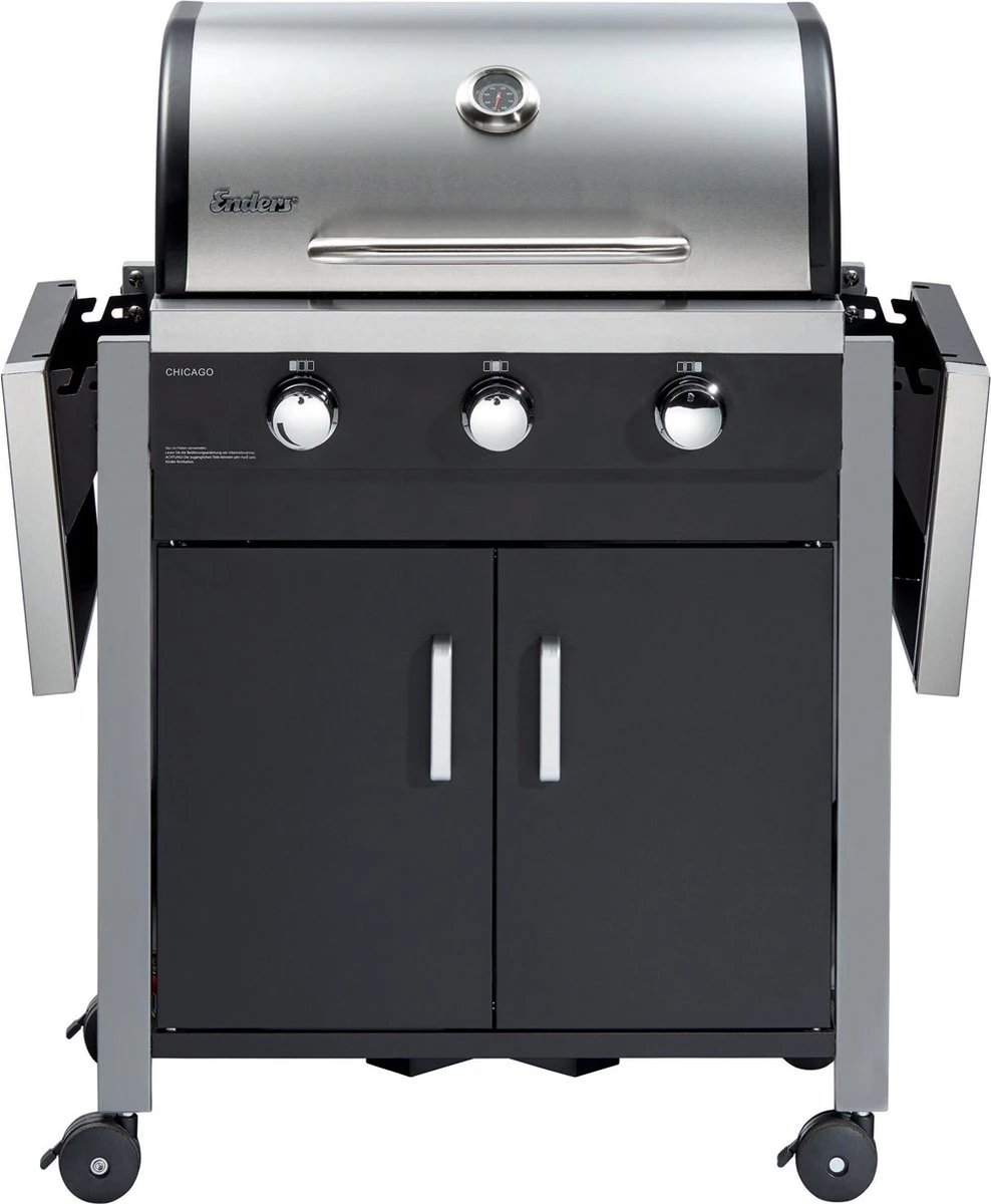L’ Enders Chicago 3 possède une hotte robuste en acier inoxydable à double paroi avec thermomètre intégré et trois brûleurs en acier inoxydable de haute qualité réglables en continu. En combinaison avec le gril en acier inoxydable en trois parties, l’ Enders Chicago 3 vous offre une très bonne répartition de la chaleur. Vos plats grillés auront de délicieux arômes grillés qui raviront toute votre famille. La grille chauffante et les deux parties latérales rabattables vous offrent un espace de rangement supplémentaire pour vos plats grillés.