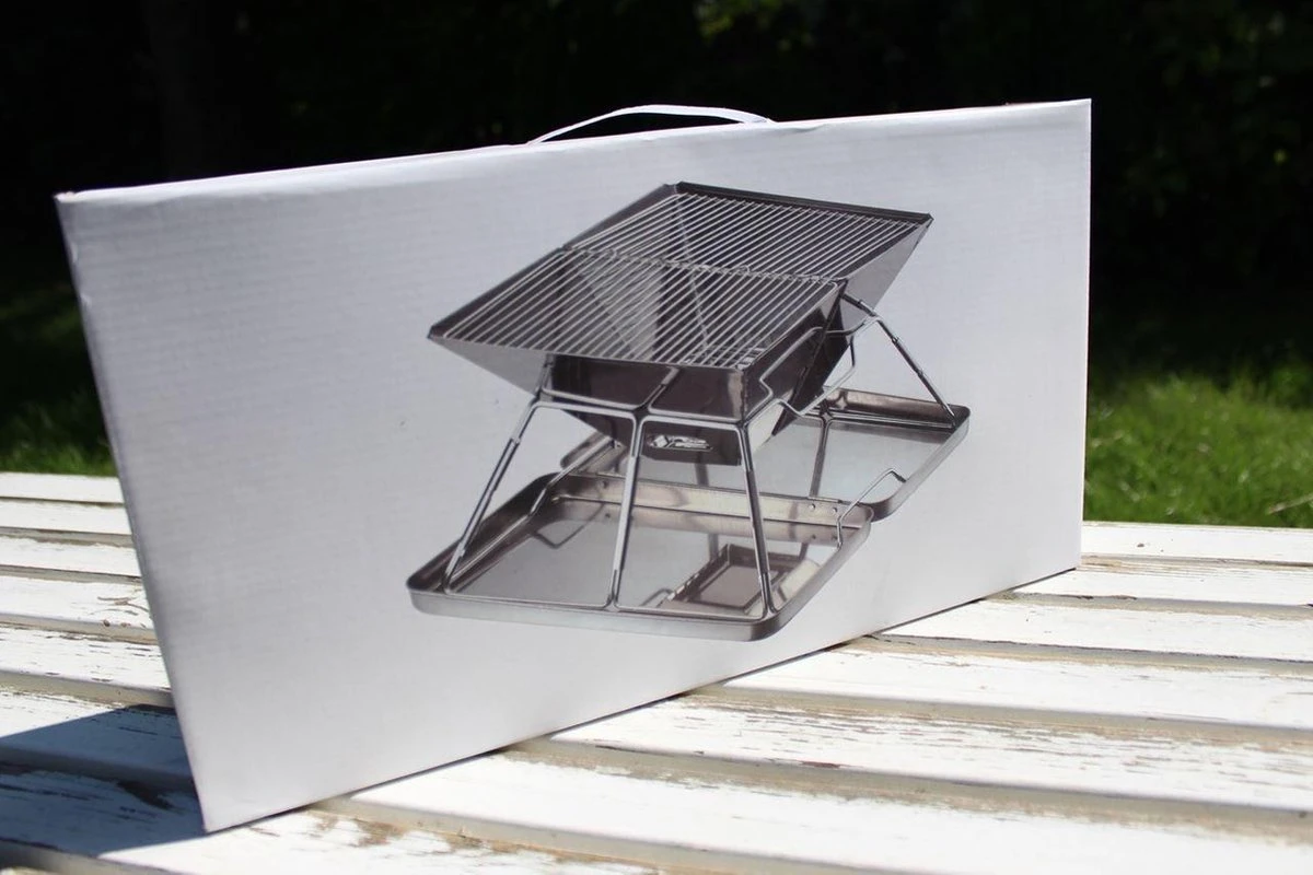 Le barbecue pliable en acier inoxydable est fait d’acier de haute qualité et est magnifiquement fini. De plus, il est livré dans un étui en métal et avec un étui de transport avec bandoulière.