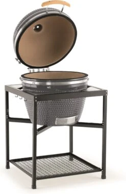 Landmann – Kamado – 26 Pouces – Grijs – Modèle De Table – Surface De Cuisson De 57 Cm – Avec Thermomètre – Avec Base Et Poignées – Double Paroi Et Isolé – Oeuf BBQ