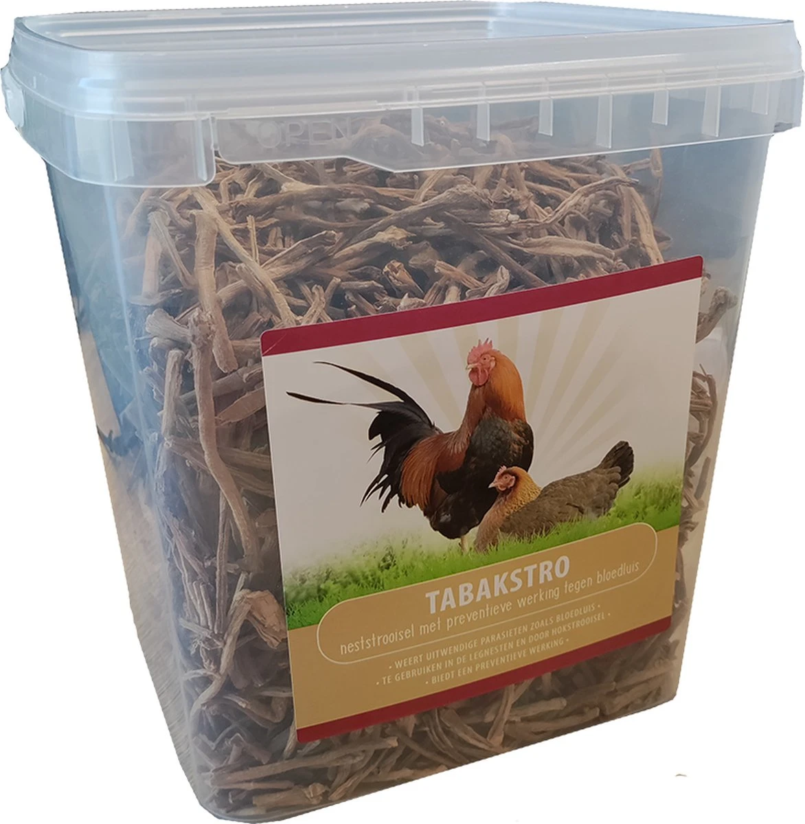 La paille de tabac prévient les parasites externes qui s’attaquent à vos poulets. L’odeur de la paille de tabac empêchera les parasites de déranger vos poules. C’est donc grâce à son odeur que la paille de tabac a un effet préventif contre les acariens et autres parasites. Il peut être utilisé dans le nid de ponte ou mélangé à la litière du poulailler de nuit des poules. En plus de la paille de tabac, le Home Farm dispose d’autres moyens contre les poux rouges. Lisez le plan étape par étape pour une utilisation correcte de la paille de tabac ou commandez directement.