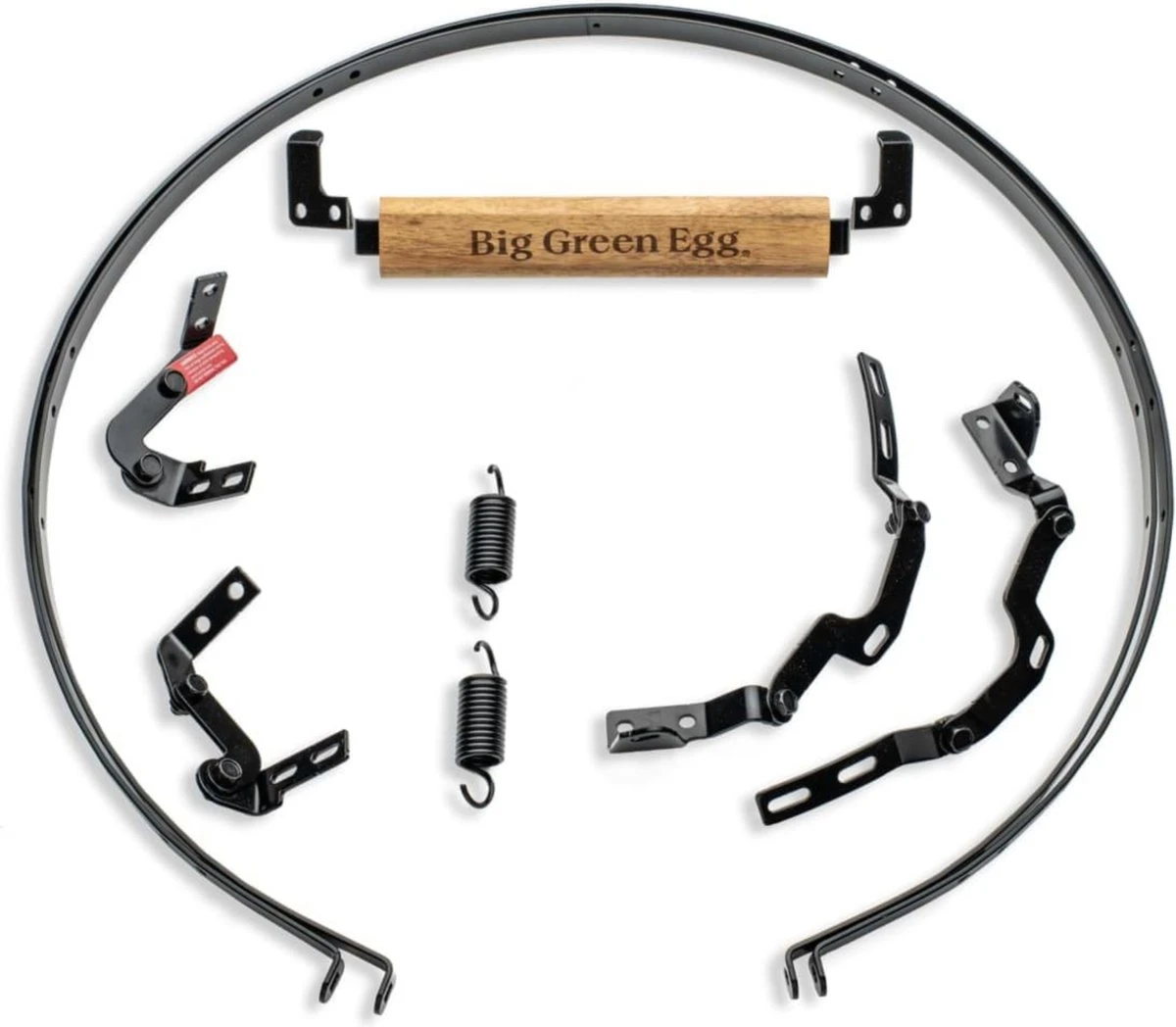 Votre charnière, sangle ressort ou poignée doit être remplacée ? Cet ensemble complet original mécanisme d’ouverture Big Green Egg est une charnière de remplacement, avec 2 nouvelles sangles métalliques et une poignée pour la taille EGG Medium