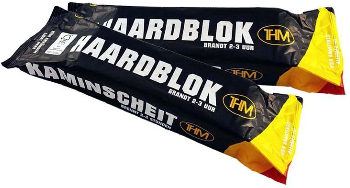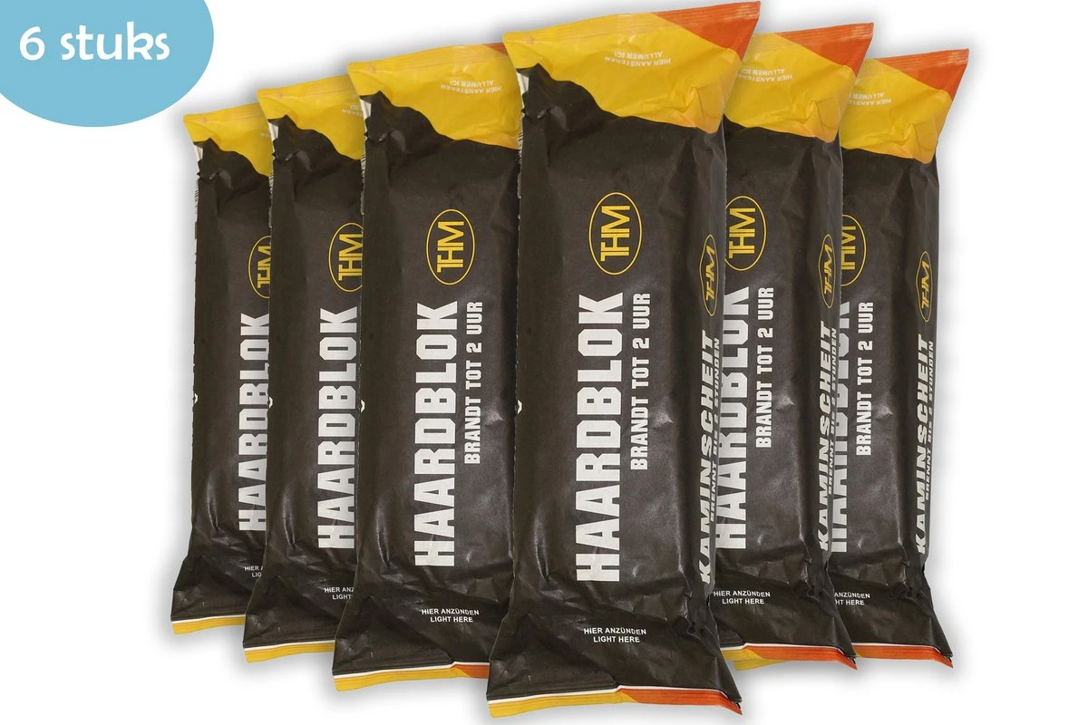 bloc cheminée 6 pièces. Idéal pour une cheminée et un foyer. Brûle plus longtemps et mieux que le bois normal. Facile à allumer: allumez les 2 extrémités et le foyer s’allumera automatiquement. La bûche a une durée de combustion de 2 à 3 heures.