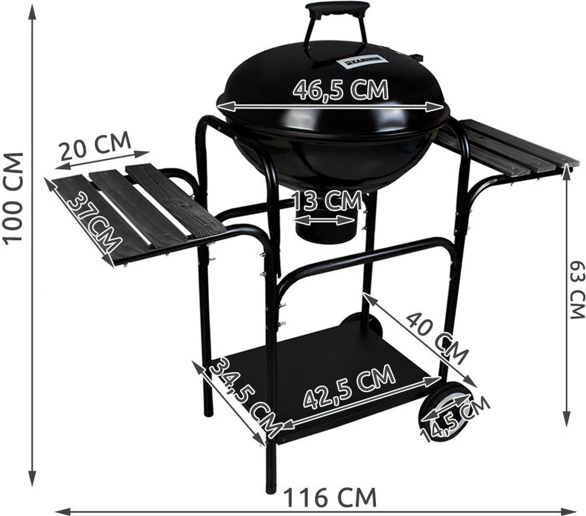 Le barbecue Borvat® Charcoal Grill est un gril à charbon rond conçu pour être utilisé dans le jardin, au camping ou lors d’une fête en plein air. Le gril a un diamètre de 46,5 cm et est fabriqué en acier inoxydable avec une finition noire. Le couvercle du gril assure une répartition uniforme de la chaleur et offre la possibilité de fumer les aliments.