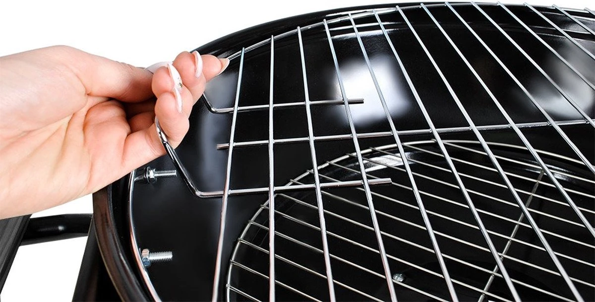 Le barbecue a une table d’appoint qui est utile pour placer les aliments et les ustensiles pendant la cuisson. Il dispose également d’un cendrier pour enlever facilement les cendres et la saleté. Le gril est facile à déplacer grâce aux roues en bas et à la poignée sur le côté.
