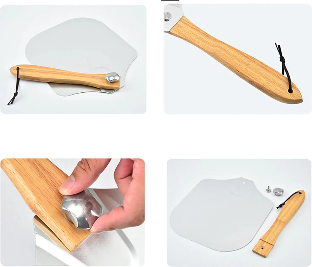 Pelle à pizza – La pelle à pizza convient à la cuisson de pizzas de 14 pouces. Même si vous recouvrez complètement les pizzas de garnitures, cette pelle peut supporter le poids facilement sans se plier. Le manche en bois de la pelle est pliable pour économiser de l’espace lorsque la pelle n’est pas utilisée. La pelle à pizza résistante à la chaleur est un incontournable pour les pâtissiers débutants et professionnels.