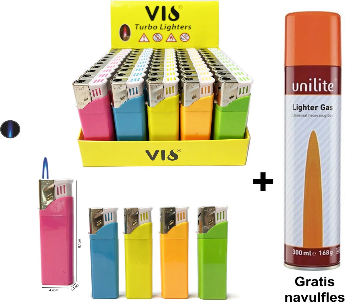 Briquets Turbo couleur néon – Unilite Vio – plateau de 50 pièces – rechargeable