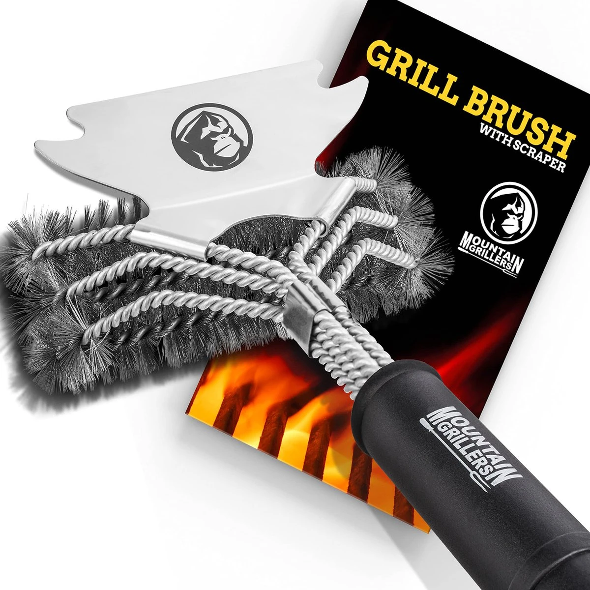 Brosse à Gril Mountain Grillers Avec Poils Robustes Et Grattoir Pointu – Cette Brosse Métallique Pour Gril Nettoie Les Grilles Métalliques Sans Les Endommager.