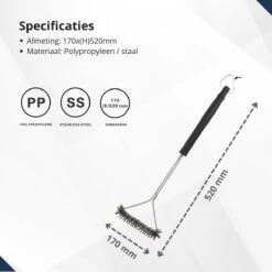 La brosse BBQ Benson est l’outil parfait pour tous ceux qui aiment le BBQ et qui n’hésitent pas à nettoyer. Avec une longueur de 30 cm, une largeur de 15 cm et fabriquée en acier et en plastique, cette brosse BBQ est suffisamment solide pour éliminer même les résidus les plus tenaces de la grille du BBQ .