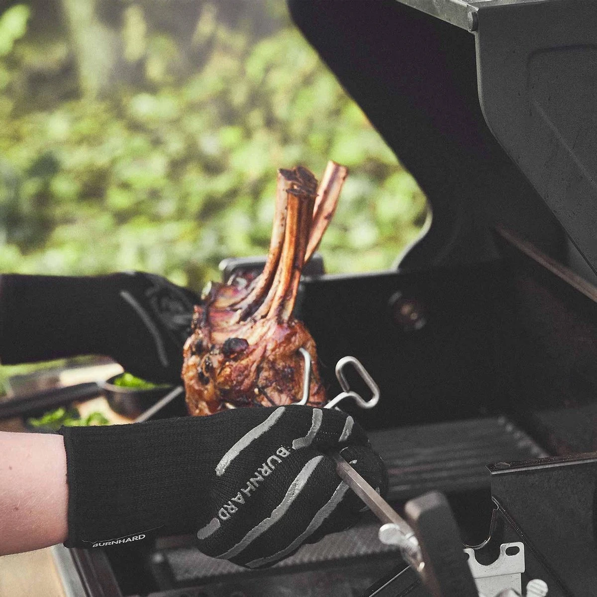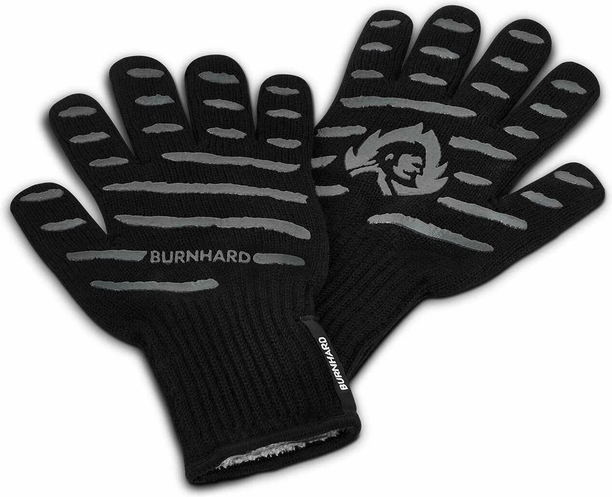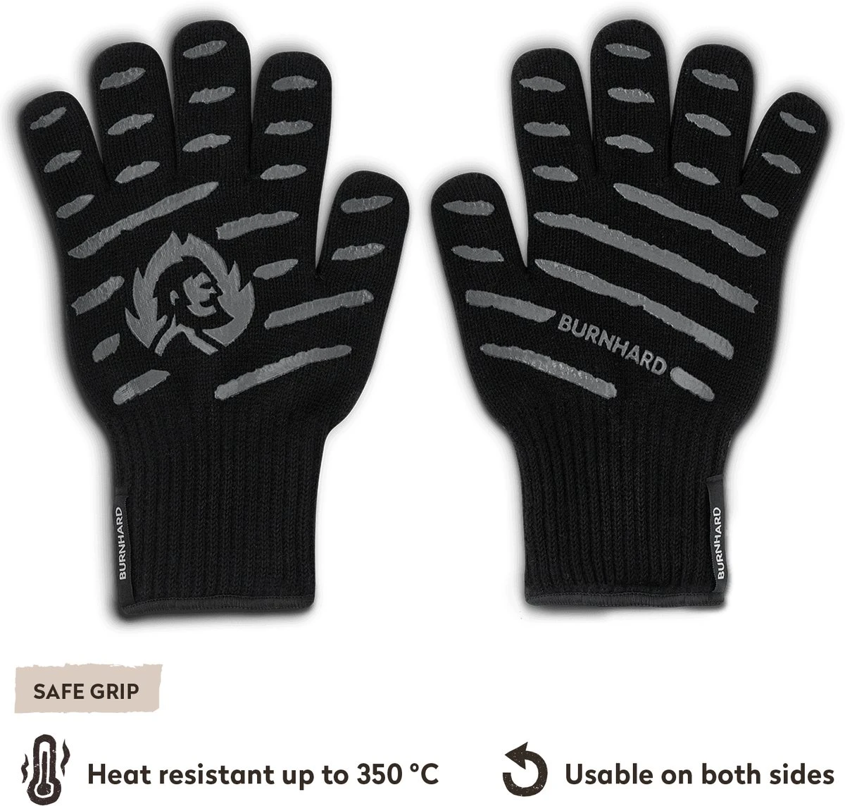 Les bandes de silicone cool à l’intérieur des gants ne sont pas seulement belles, elles servent vraiment à quelque chose ! Ils offrent une prise extrêmement ferme – pour que la poêle à barbecue chaude ne glisse pas de vos mains, en toute sécurité ! Vous pouvez utiliser les gants des deux côtés pour voir le logo d’un côté et le lettrage BURNHARD de l’autre – méga ou ? Il est donc grand temps que les gants soient ajoutés à votre collection d’outils de barbecue indispensables.