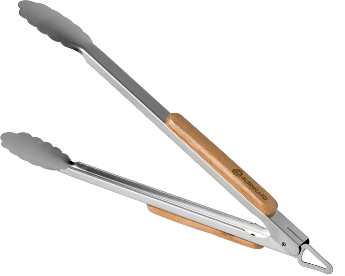 Votre BBQ essentiel – Avec les pinces à griller de BURNHARD, vous avez toujours sous contrôle les steaks, les saucisses et les légumes. Tout est sous contrôle – que ce soit en position couchée, en retournant ou en servant – les longues pinces inclinées facilitent la prise en main et le transport de vos grillades. Les pinces à gril sont en acier inoxydable brossé mat. Le matériau reste inoxydable, est inodore et insipide et extrêmement résistant à la chaleur. La distance par rapport au gril chaud est également suffisante: la longueur totale des pinces à gril est de 45 cm! Détails pratiques – Les poignées en bois d’acacia grainé sont confortables et antidérapantes dans la main et ont fière allure grâce à leur grain fin. L’extrémité de la poignée a un œillet pour accrocher les pinces au crochet de votre barbecue, prêt à rester à portée de main. Grâce au mécanisme de verrouillage intégré, vous pouvez ranger cet outil intelligent particulièrement peu encombrant. Et après le barbecue barbecue? Les pinces à gril peuvent être rapidement nettoyées à la main sous l’eau chaude.