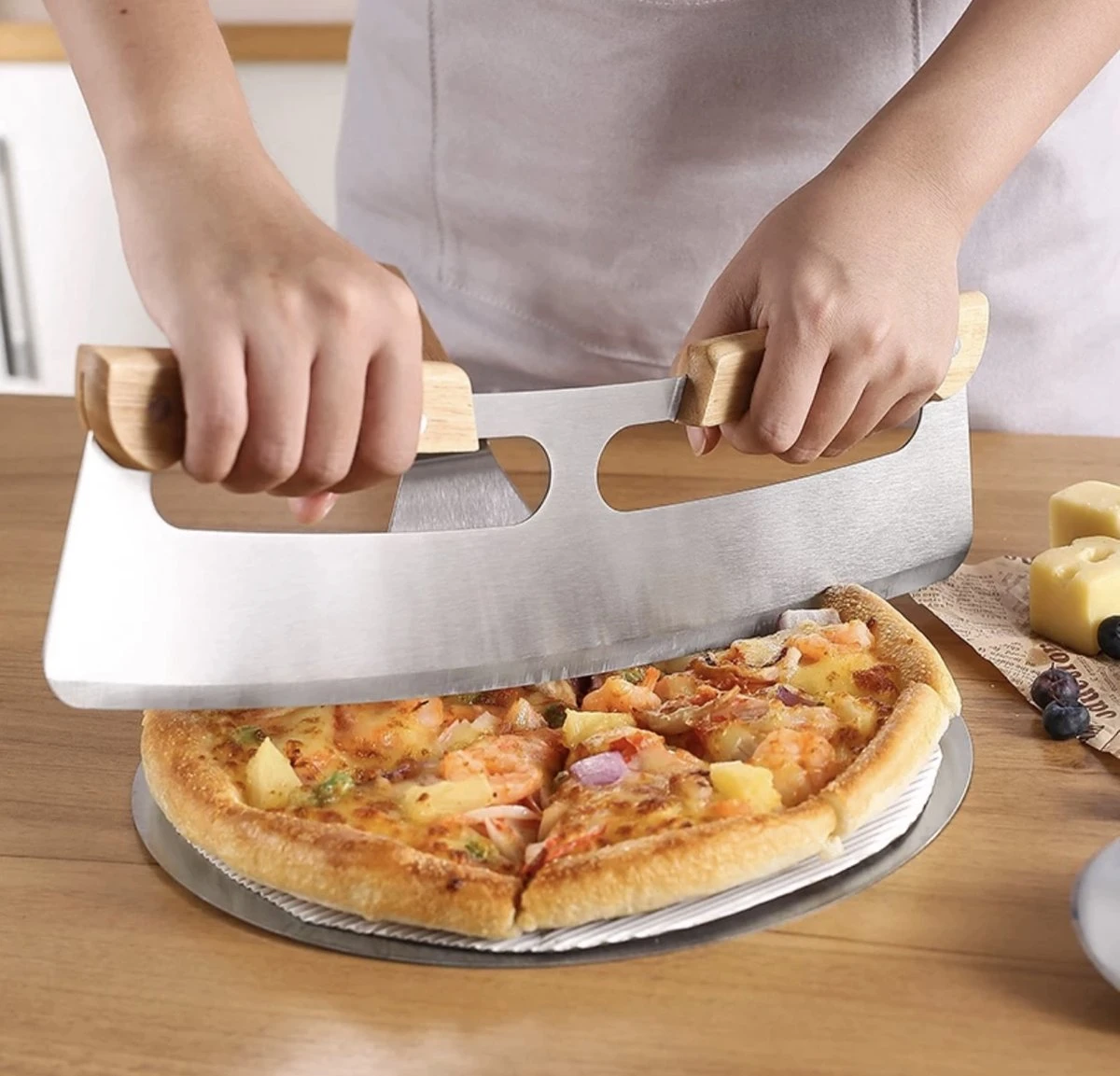 Couper votre pizza en morceaux est super facile avec le couteau à pizza, grâce à la combinaison d’une large lame de coupe en acier inoxydable de 32,5 cm et du manche en bois. Celui-ci peut couper à travers un fond sans toutgarnitures à transporter, comme le font certains couteaux ordinaires. Vous pouvez couper la pizza avec juste une faible pression sur le couteau. Trèsergonomique