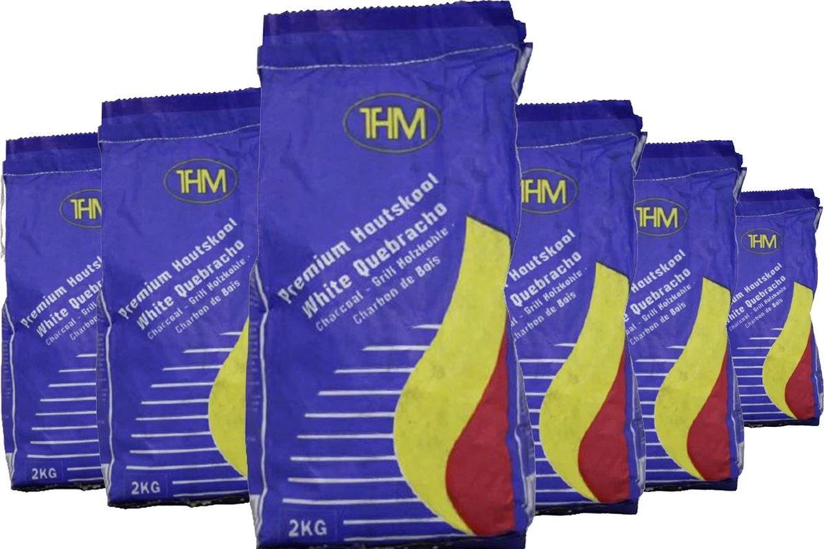 Charbon de qualité Premium White Quebracho taille plus petite (30-80 mm). Emballé dans la veste THM classique. Le meilleur bois dur de Quebracho White provient des forêts subtropicales les plus sèches d’ Amérique. Ce bois dur a une structure très dense, ce qui donne au charbon de bois une valeur de combustion très élevée, ce qui se reflète dans la longue durée de combustion et les températures élevées. Cela rend le charbon de bois idéal pour les longues sessions de BBQ . THM Charbon de bois 2 kg Premium WQ est produit à partir de bois provenant de ces forêts. Bon à utiliser pour les barbecues ouverts / fermés, les fumeurs / fumeurs et les petits kamados où les gros morceaux sont souvent «trop». Le naam Quebracho vient de l’espagnol «Quiebra Hacha» et signifie littéralement «brise la hache». Ce charbon lui-même donne un arôme spécifique clair au plat.
