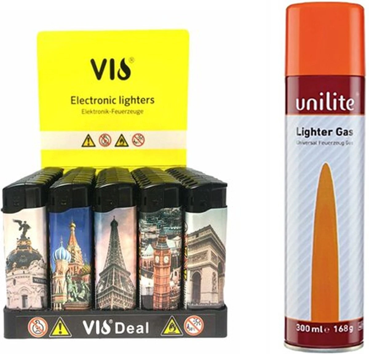 - Les briquets ont différentes impressions de villes.