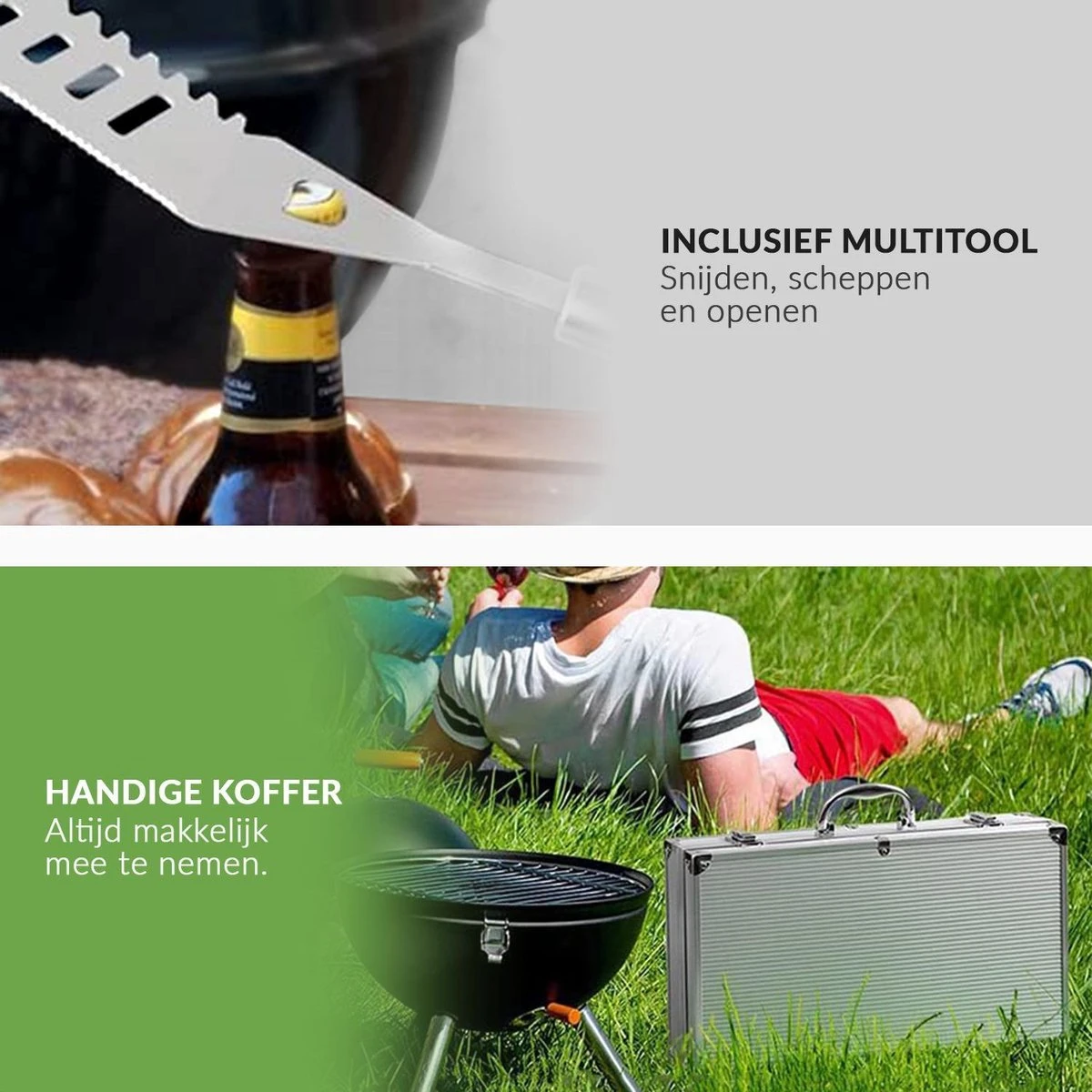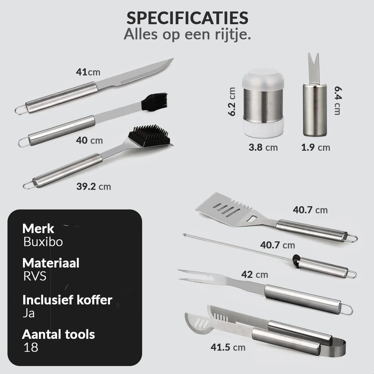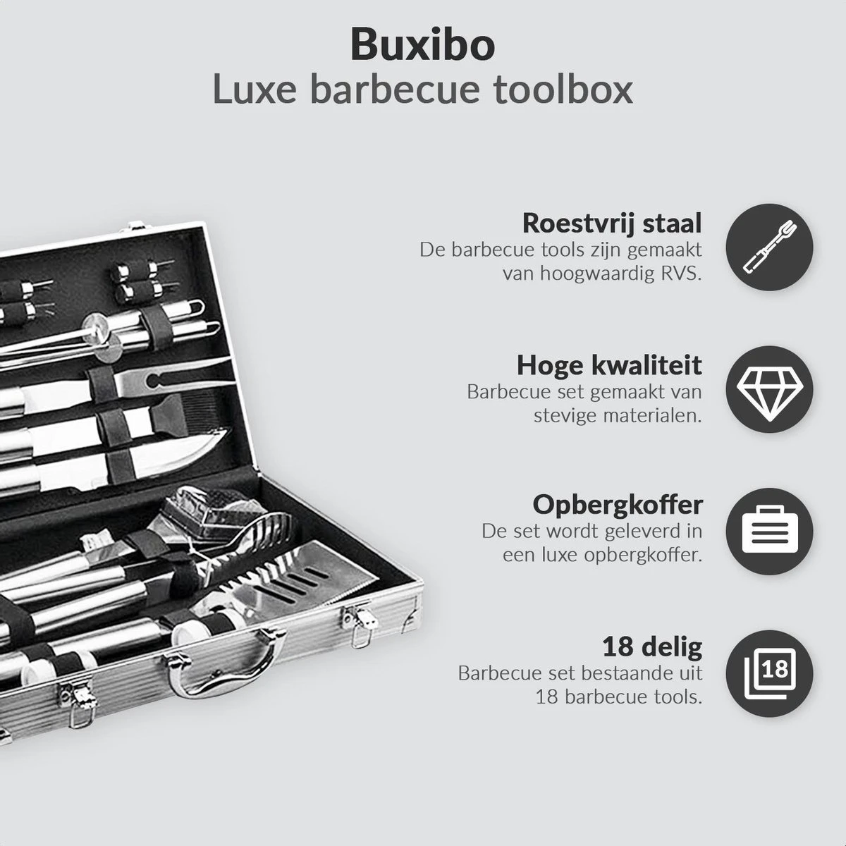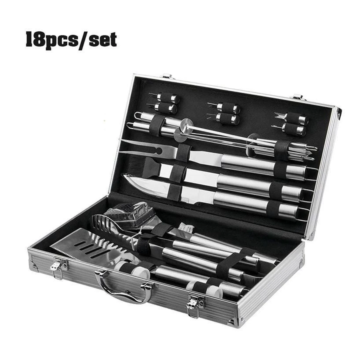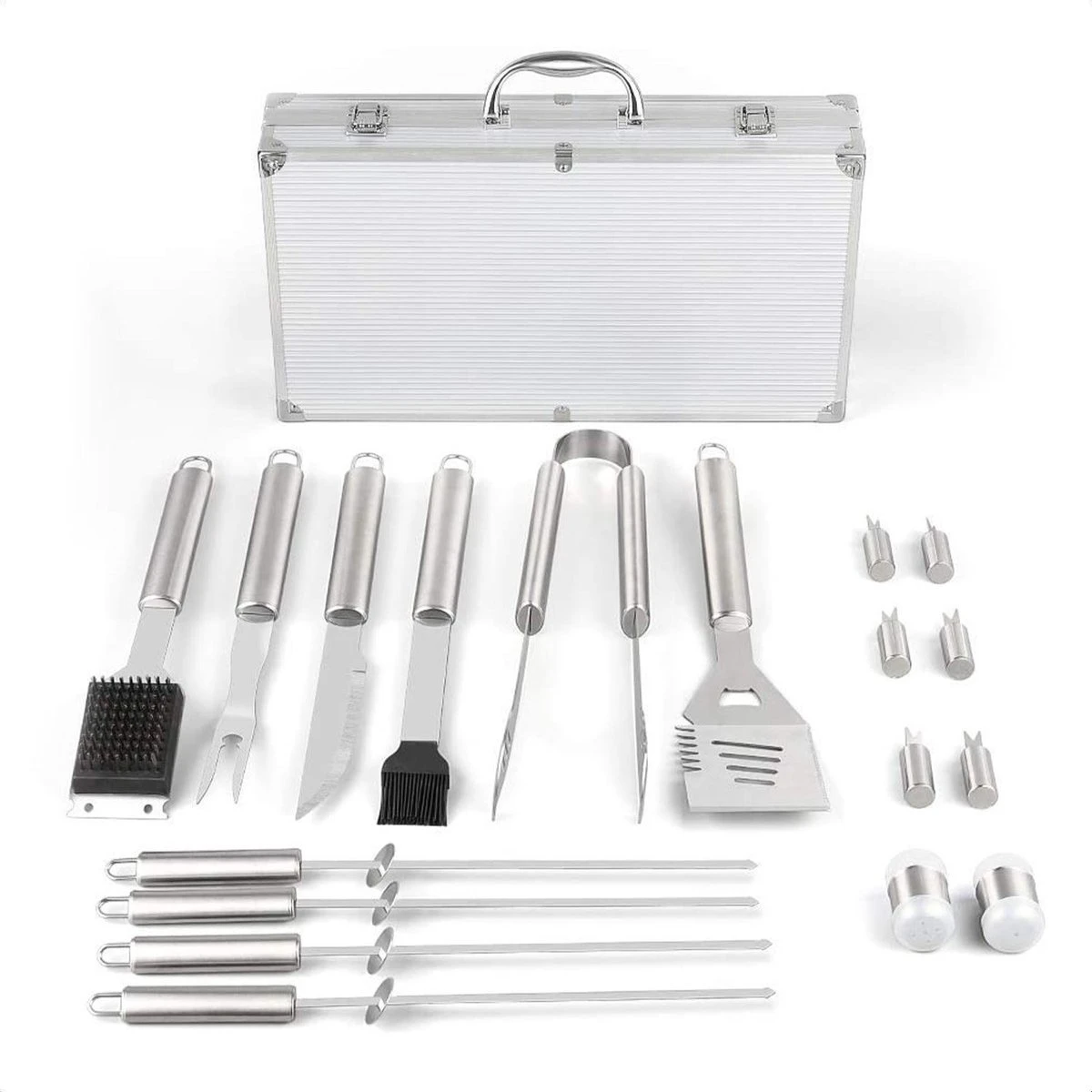 Profitez encore mieux d’un barbecue avec le un barbecue ensemble de Buxibo. Cet ensemble d’outils de barbecue de luxe est l’ensemble idéal pour tous les plats. Acier inoxydable de qualité supérieure: l’outil de grillage conçu pour répondre à tous vos besoins un barbecuebesoins et avec un étui en aluminium pour les transporter. Belle mallette de transport avec double serrure pour un rangement sûr. La qualité du un barbecueles outils sont extrêmement bons, ils sont en acier inoxydable solide. Le garage de la cuisine est très sûr, il est un barbecue-Outils de gril spécialement conçus avec de longues poignées qui offrent une plus longue portée et gardent les mains éloignées de la chaleur Convient à tous les plats sur le barbecue