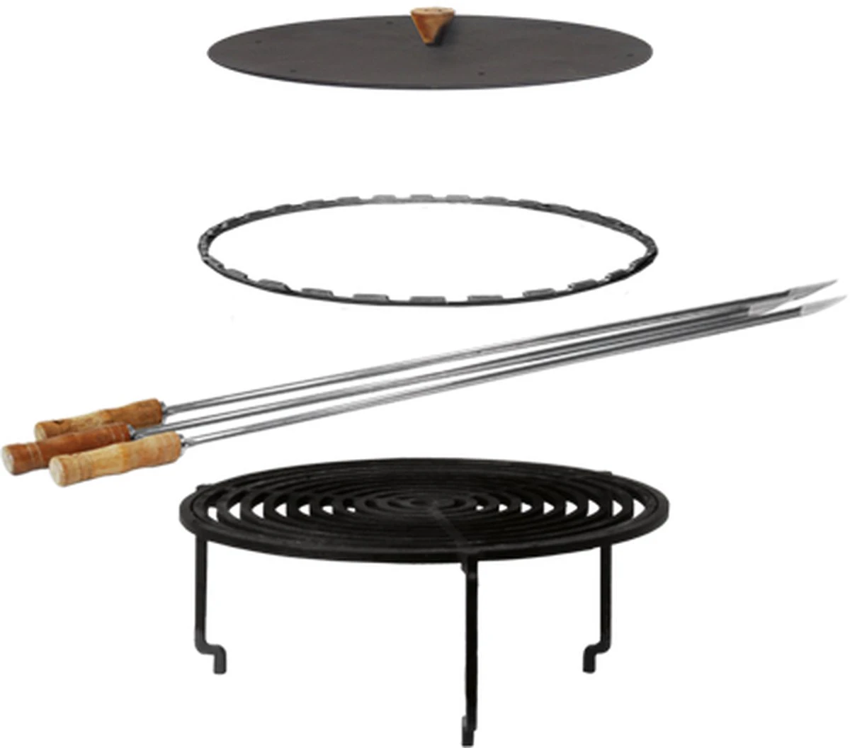 L’ensemble d’ Accessoires de vêtements pour bébé OFYR premium se compose de : 1. Couvercle d’extinction OFYR 100 2. Ring de Pics à brochettes horizontales OFYR 100 3. Pics à brochettes OFYR 85 cm 3 pièces 4. Grille de gril OFYR 100 5. Support de grille OFYR pour gril et Ring horizontal (21 cm)
