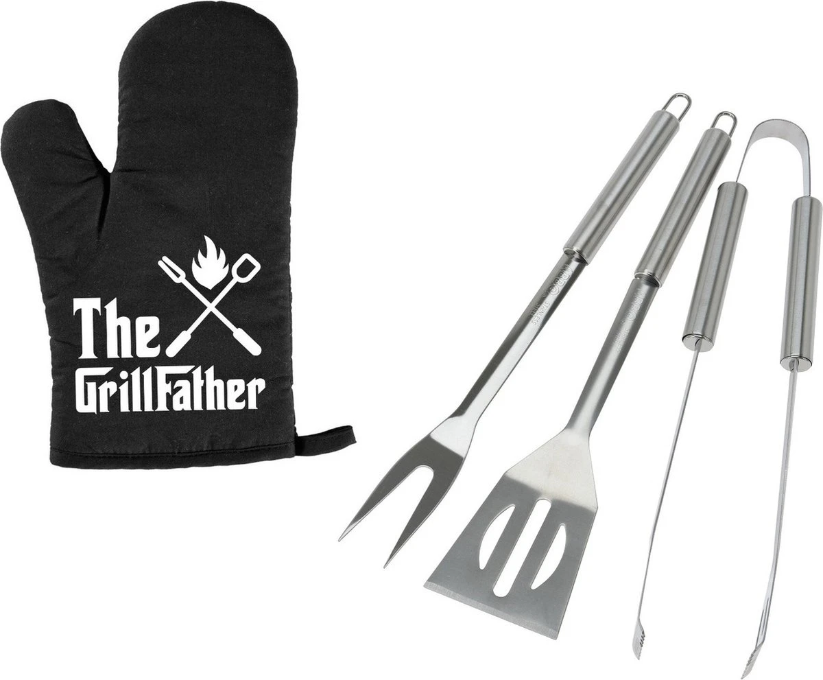 Matière : 100% coton. Taille du gant : 17 x 26,5 cm, l’ouverture de la main fait 13 cm de large. Couleur : noir. La mitaine protège jusqu’à une température de 200 degrés et n’offre aucune protection au contact du feu. Instructions de lavage : lavage à la main, ne pas javelliser, ne pas nettoyer à sec, ne pas repasser et ne pas sécher au sèche-linge. Lavez régulièrement le gant pour éviter l’accumulation de taches. composé de 1x ensemble d’outils pour BBQ/ barbecue 3 pièces en acier inoxydable, 1x gant de BBQ The Grillfather / mitaine de barbecue homme noir – cadeau de Vaderdag