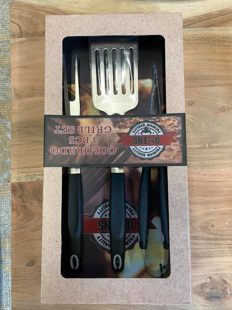 | Contenu de l'emballage | Ensemble de 3 BBQ Oxens – fourchette, spatule et pince |