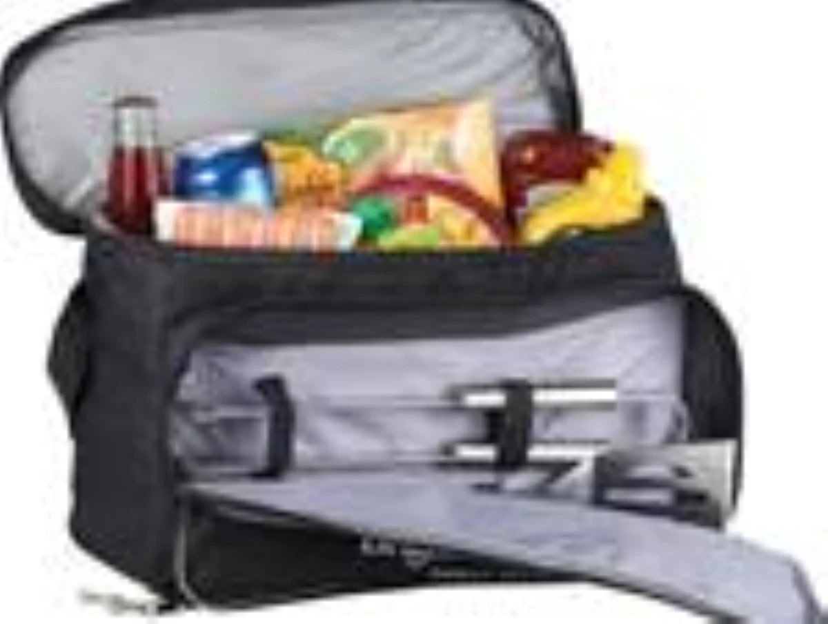 Le sac isotherme de pique-nique est en polyester et possède une bandoulière réglable et amovible. La glacière de pique-nique a 3 compartiments. Dans le grand compartiment, vous pouvez ranger le barbecue et dans le deuxième compartiment, vous pouvez mettre vos aliments, qui restent froids, car c’est un compartiment de refroidissement. Si vous n’avez pas de barbecue à l’intérieur, vous pouvez également utiliser ce compartiment pour conserver les aliments au froid. De plus, il y a un petit compartiment sur le dessus du sac réfrigérant, dans lequel vous pouvez mettre un sandwich, par exemple, c’est aussi un compartiment réfrigérant. Afficher moins