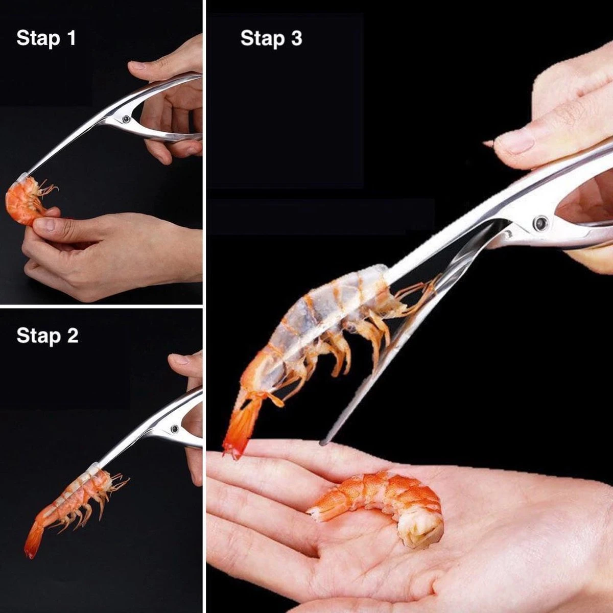 Quiconque a déjà préparé des crevettes ou des crevettes connaît le problème. Peler cette peau embêtante. Avec ces pinces pratiques, vous simplifiez les choses! En plaçant la pince fermée entre la viande et la coquille de la crevette puis en l’ouvrant, vous vous assurez que la viande se détache de la peau en un seul morceau!