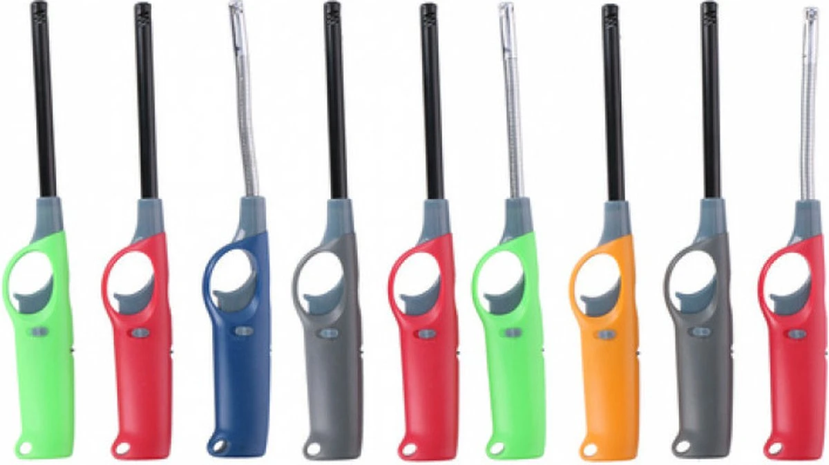 Ensemble de briquets pour BBQ/ cuisine 9x pièces multicolores 26 x 3,5 cm. Briquets pratiques pour la cuisinière à gaz, le barbecue ou le feu. Flamme électronique, rechargeable. La hauteur de la flamme est réglable. Les couleurs sont aléatoires.