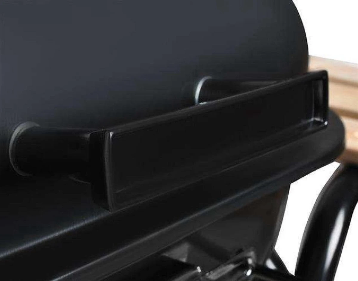 Les roues facilitent le déplacement du gril – soulevez légèrement le gril et tirez la poignée. Vous pouvez mettre des assiettes, des accessoires de gril et des aliments sur les étagères au lieu d’aller du gril à la table. - DEUX TABLETTES LATÉRALES ET TABLETTE INFÉRIEURE –