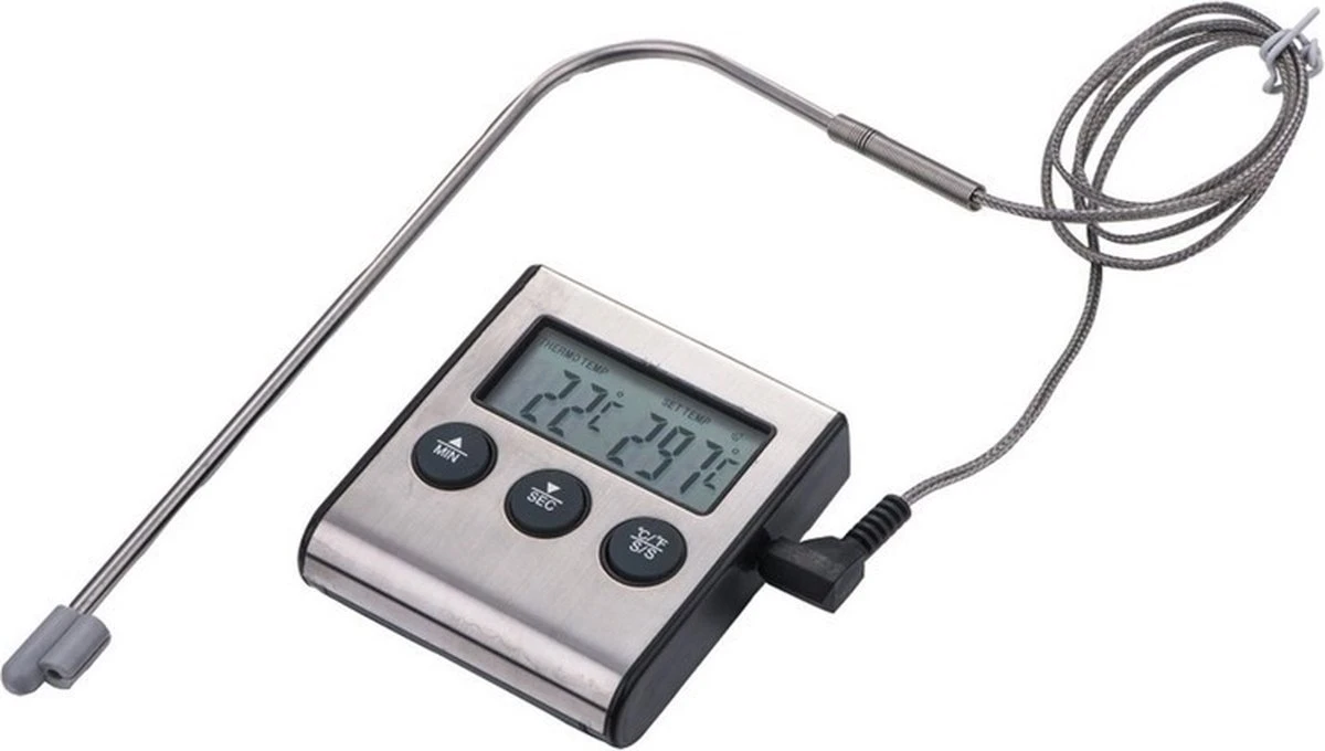 Livré avec thermomètre à viande numérique/thermomètre à rôtir. 1x pile AAA non incluse. composé de 1x Thermomètre de cuisine numérique, 1x Grille à poulet / grille à poulet pour le barbecue / BBQ/ four en acier inoxydable 20 cm