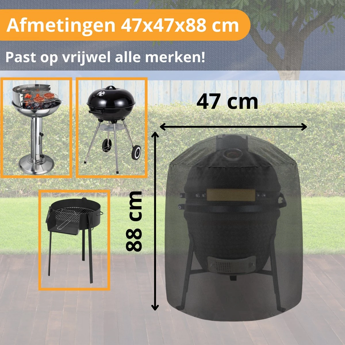 Cette housse de barbecue s’adapte à tous les barbecues ronds d’un diamètre allant jusqu’à 47 cm. La housse est fabriquée en polyester 190T solide avec un revêtement PU hydrofuge. La housse est résistante aux UV et peut résister à toutes les conditions météorologiques. Grâce au cordon de serrage pratique en bas, vous pouvez étirer fermement la housse autour du barbecue et elle reste bien en place.