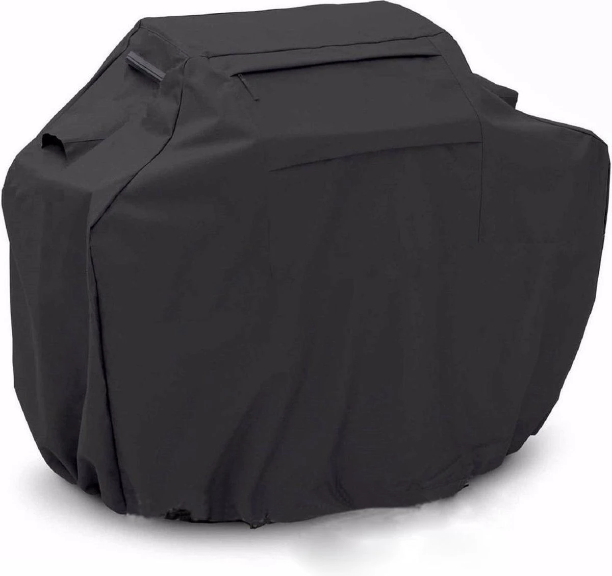 La housse est en matériau PU imperméable et convient à toutes les conditions météorologiques. Au bas se trouvent des boucles en plastique que vous pouvez attacher aux pieds pour que le couvercle reste sur votre barbecue même par temps venteux. Il y a aussi une bande élastique en bas pour bien serrer le couvercle.