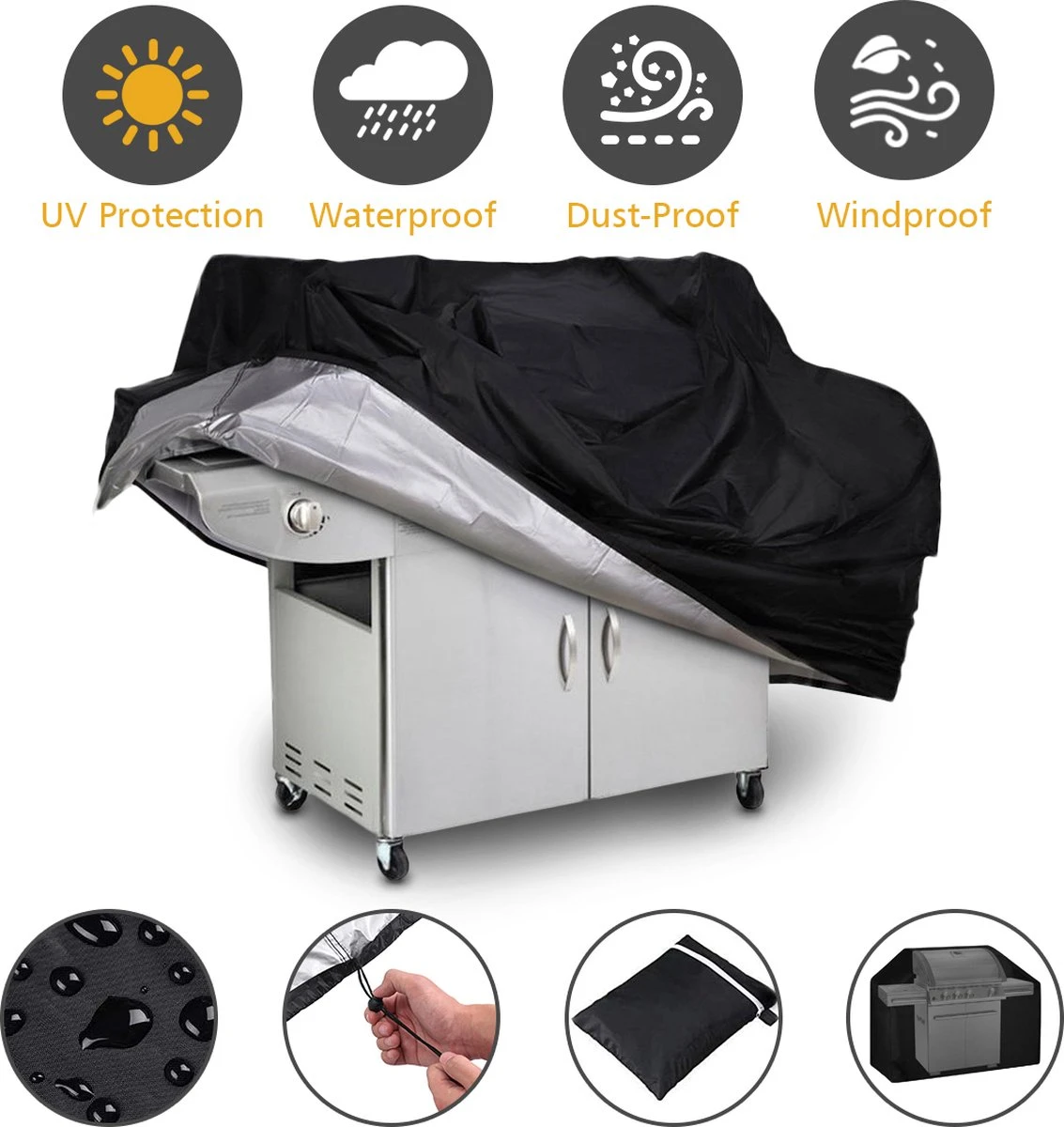 - IMPERMÉABLE! RÉSISTANCE AU VENT ! :POUSSIÈRE! Protégez votre barbecue de l’humidité, de la poussière, de la décoloration, des rayons UV, des retardateurs de flamme, de la moisissure, du froid, antiseptique, anti-âge, résistant aux UV, facile à nettoyer, résistant aux hautes températures, ne craquera pas les jours de neige et peut protéger efficacement les meubles protéger. Rendez votre barbecue plus long, plus durable et gardez-le propre et sec.