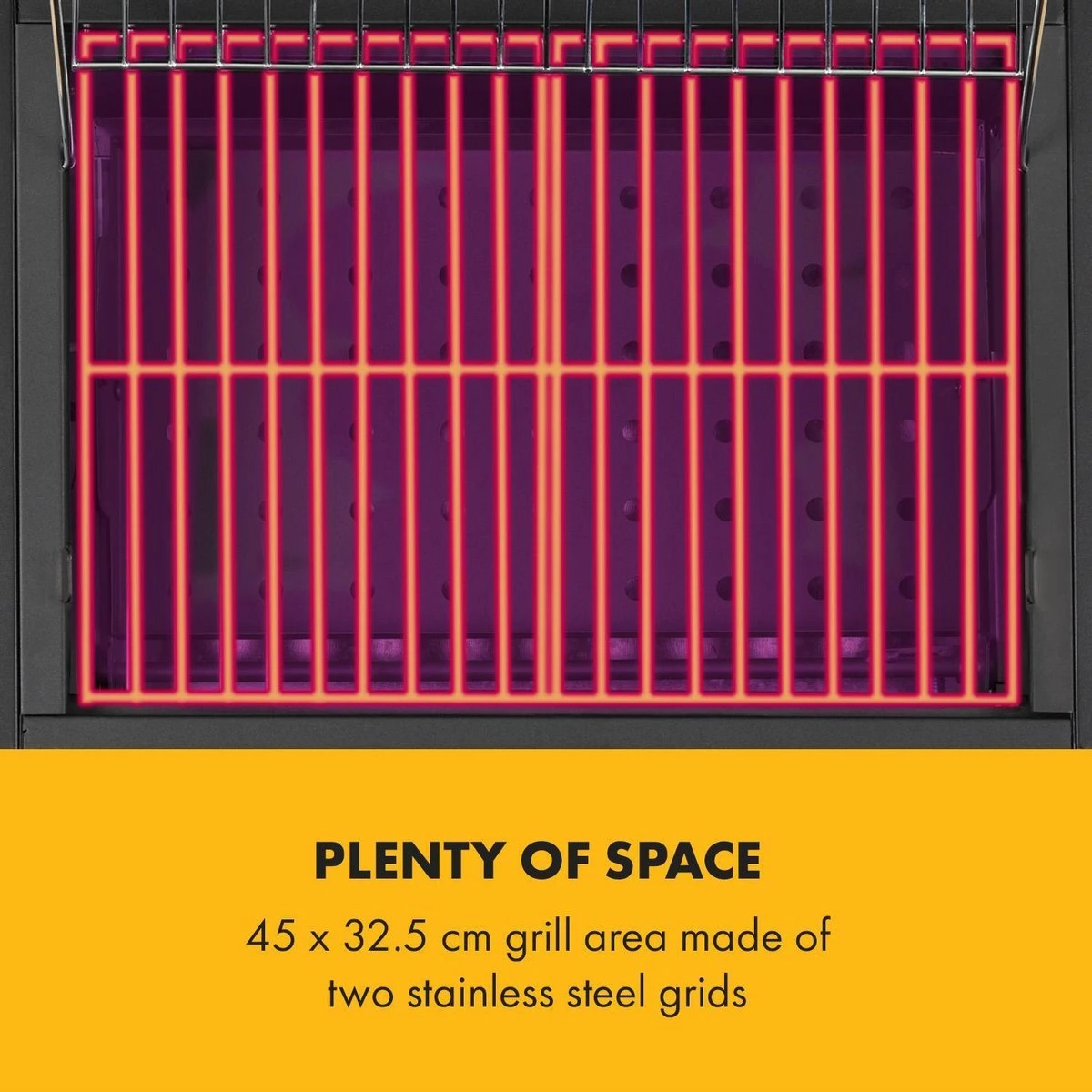 - Beaucoup d’espace: surface de gril de 45 x 32,5 cm composée de deux grilles en acier inoxydable