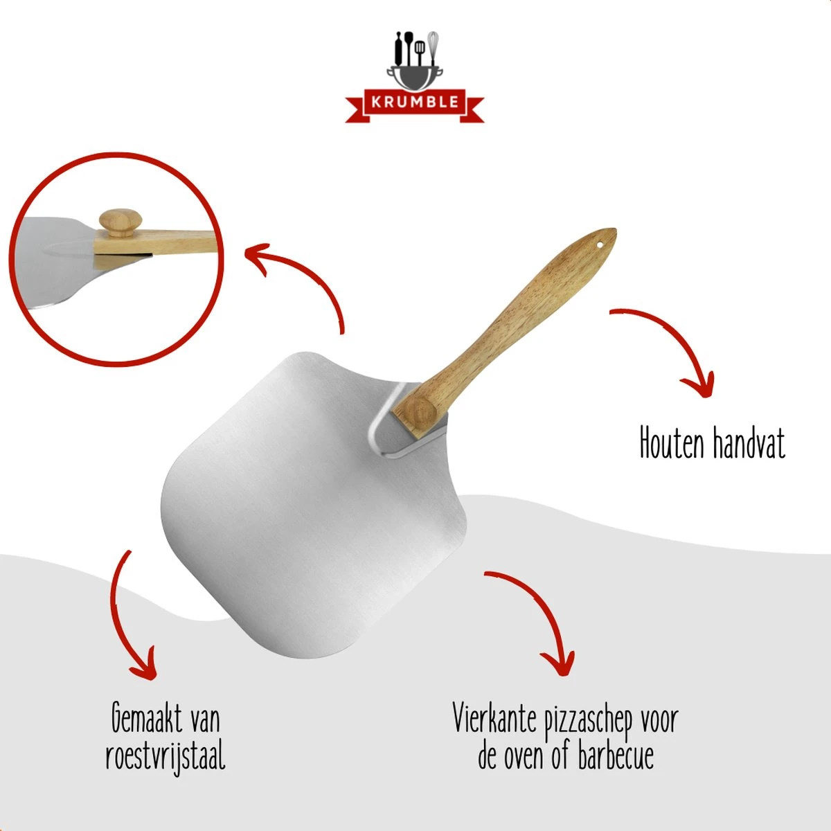 Ben aimez la pizza, mais vous avez du mal à sortir correctement la pizza du four ou du barbecue ? Alors cette pelle à pizza Krumble vous facilite la vie. La pelle à pizza carrée a une belle taille pour ramasser les pizzas. De cette façon, vous pouvez sortir votre délicieuse pizza du four sans aucun problème. La spatule à pizza est également un accessoire pratique si vous aimez préparer la pizza au barbecue. Geen de doigts brûlés, pas de pizza qui tombe par terre et savourez les délicieuses pâtisseries !