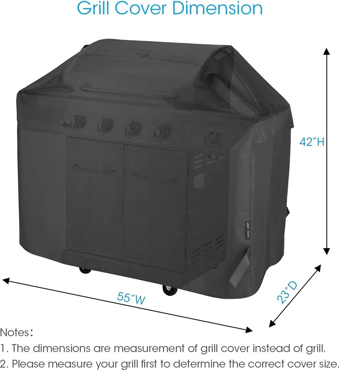 LAUWG – Housse De BBQ 55 Pouces, Housse De Gril à Gaz étanche Et Résistante à La Décoloration Et Aux UV, Compatible Avec Les Barbecues Weber Char Broil Outback, Noir (140 X 58 X 107 Cm)