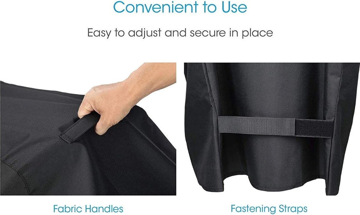 - Poignées et sangles : poignées en tissu durable sur les deux côtés pour un montage et un retrait faciles sans effort en quelques secondes. Les poignées peuvent également être utilisées pour suspendre et ranger facilement. Des sangles de montage pratiques et robustes de 1,5 pouce de large maintiennent le couvercle en toute sécurité et empêchent le couvercle de s’envoler par vent fort.
