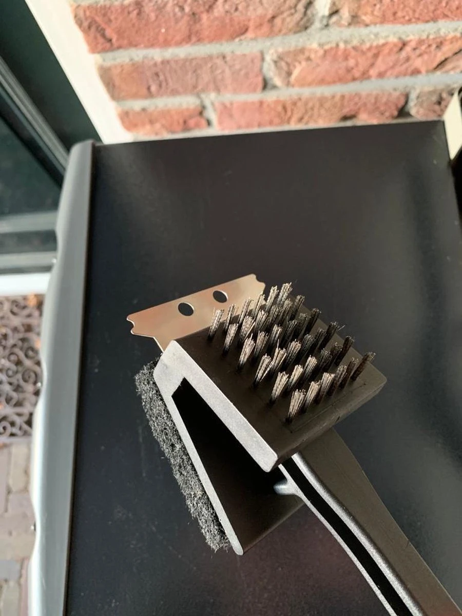 – De plus, vous disposez non seulement d’une brosse métallique robuste, mais également d’une éponge en acier et d’une lame de raclage, le tout dans un seul produit, pour que l’entretien de votre barbecue soit désormais efficace et facile.