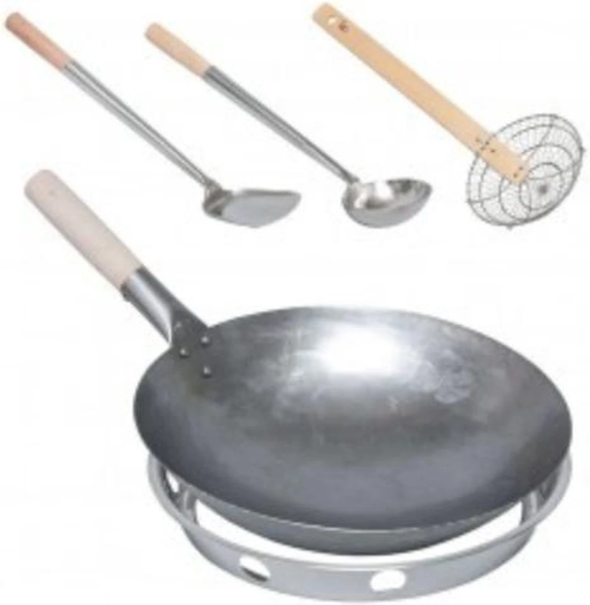 Le Wokset Monolith se compose d’un wok, d’une spatule, d’une louche, d’une cuillère à fentes et d’un sous-verre solide sur lequel le wok peut être placé en toute sécurité.