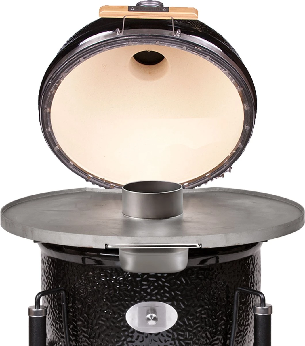 Plaque de cuisson en acier qui transforme tout le dessus du Monolith Icon en une grande plancha. Convient pour faire de grandes quantités ou plusieurs plats en même temps. Avec au milieu l’évidement pour la roue magriet afin que la température puisse toujours être régulée de manière optimale. La plaque de cuisson dépasse de 10 cm du bord, créant une zone de réchauffement. Avec évidement pour une plaque gastronorme 1/9 pour faire glisser facilement le shortening et les restes de la plaque de cuisson.