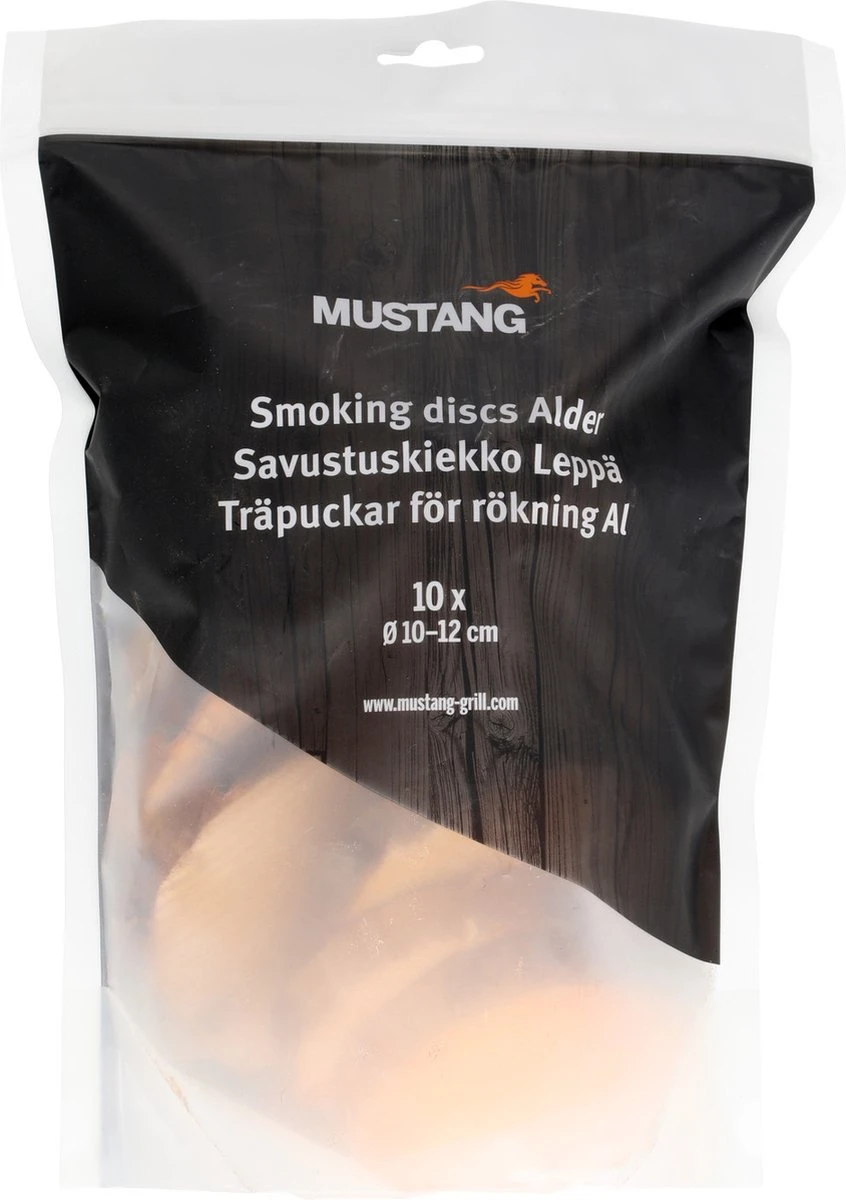 Les disques de fumée en aulne Mustang produisent une fumée et un arôme propres et fumants pendant environ deux heures chacun, après quoi vous devez insérer un nouveau disque.