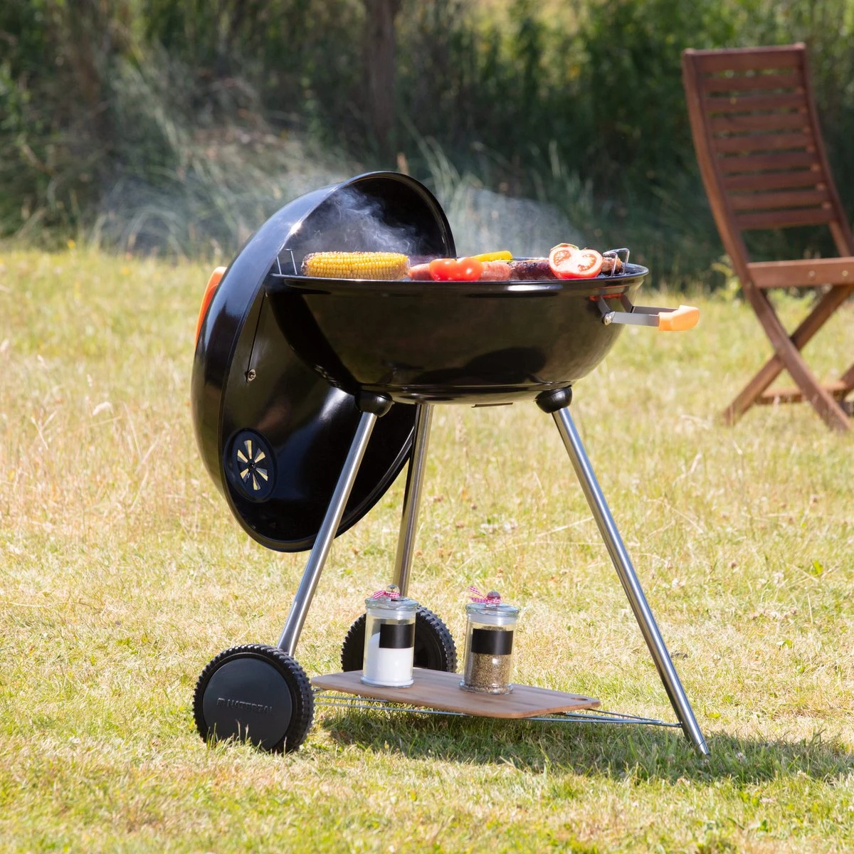 - PRATIQUE : Ce BBQ a une étagère sous le BBQ où vous pouvez ranger le sac de charbon de bois et l’avoir toujours à portée de main. Grâce aux deux roues et à la poignée, il est facile à ranger et à déplacer. La poêle à BBQ est équipée d’un collecteur de cendres, vous pouvez donc nettoyer la grille du gril plus rapidement.