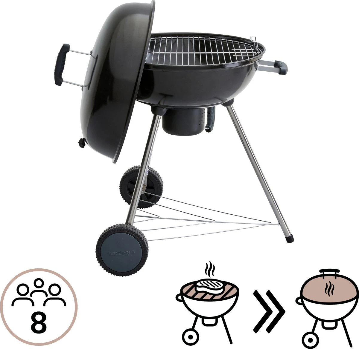 - PRATIQUE : Ce BBQ a une étagère sous le BBQ où vous pouvez ranger le sac de charbon de bois et l’avoir toujours à portée de main. Grâce aux deux roues et à la poignée, il est facile à ranger et à transporter. La poêle à BBQ est équipée d’un collecteur de cendres, ce qui facilite le nettoyage de la grille du gril.