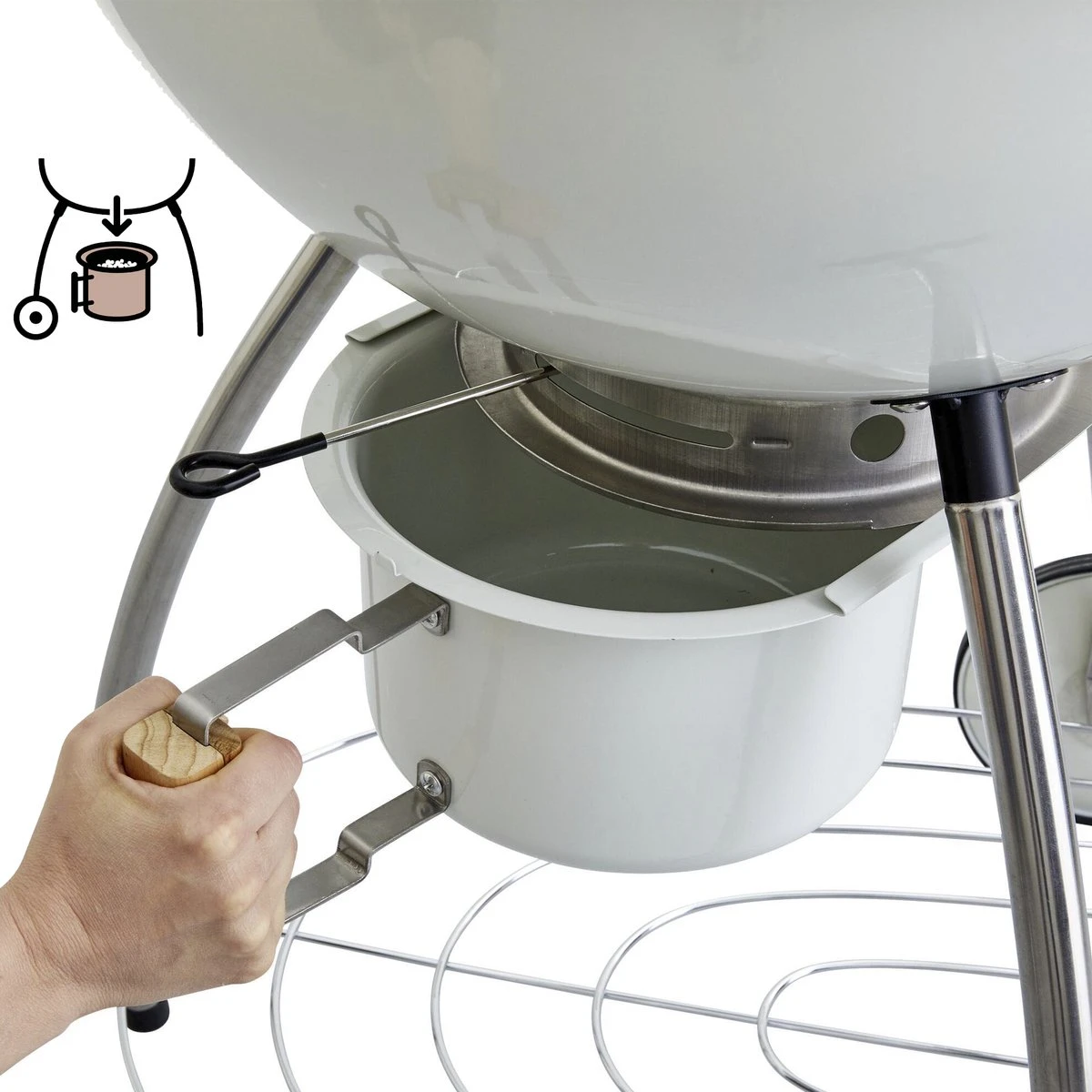Le gril blanc cassé PHOENIX BETA II facilite la cuisine en plein air. Vous pourrez facilement préparer un repas pour 8 personnes, idéal pour les repas entre amis ou en famille. La poêle comporte une grille de feu et des séparateurs qui divisent les braises chaudes en deux flammes latérales, créant une chaleur de grillade plus douce, idéale lorsqu’elle est utilisée avec le couvercle fermé. Vous pouvez mettre le charbon de bois sur la grille de feu et laisser l’air circuler en même temps. Il est équipé d’un espace optimisé pour les briquets. Pendant la cuisson, vous pouvez ajouter du charbon de bois par l’ouverture de la grille. Vous pouvez également accrocher le couvercle sur la grille du gril pour une cuisson mains libres. Le couvercle a des évents réglables qui vous permettent de contrôler l’intensité de vos flammes, ainsi qu’un thermomètre pour mieux contrôler vos grillades. Il peut être utilisé avec le couvercle pour griller ou cuire.