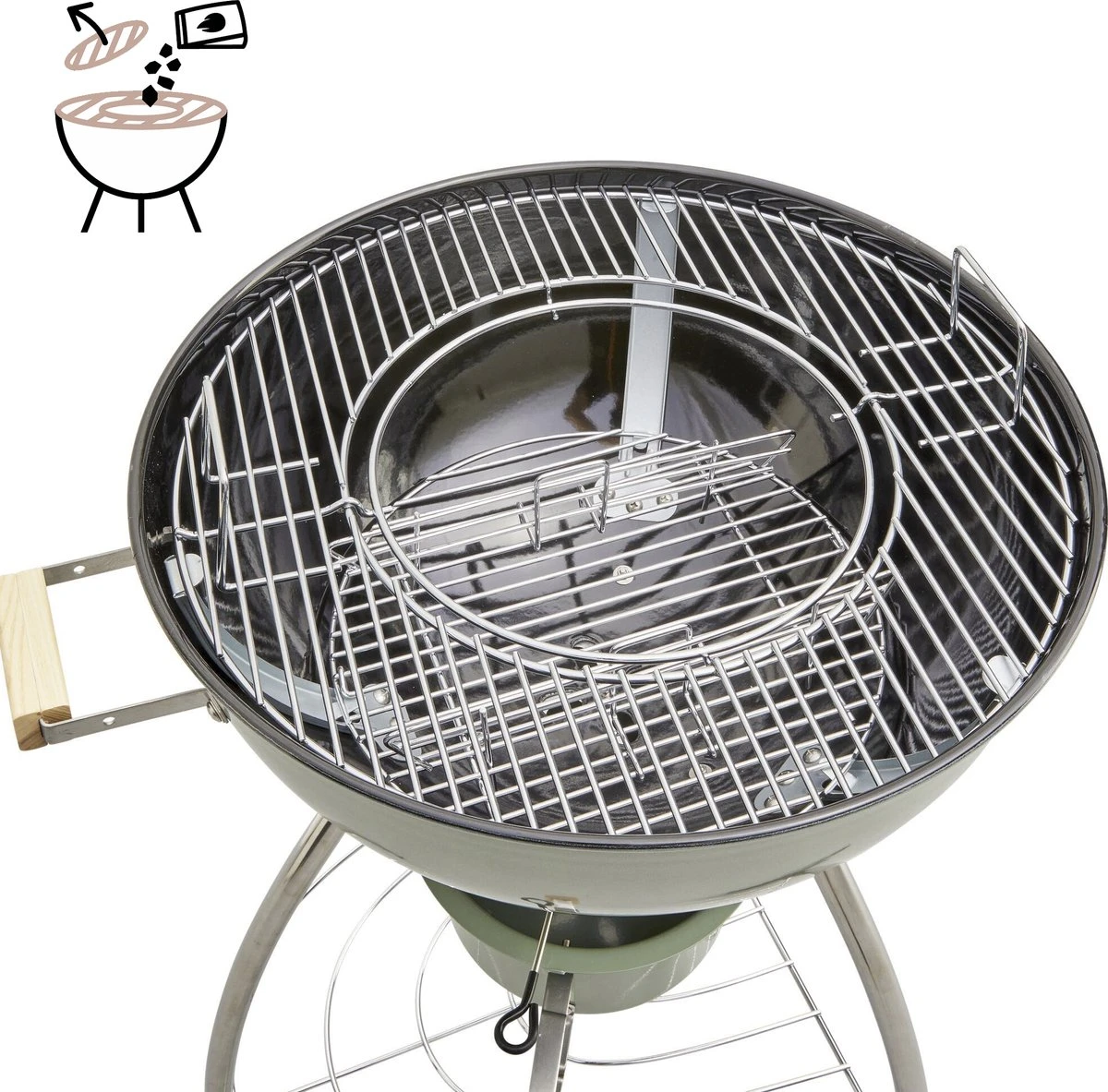 - PRATIQUE : Ce gril a une étagère sous le gril pour ranger le sac à charbon et 2 crochets pour la cuisson. Grâce aux 2 roues et à la poignée, il est facile à ranger et à transporter. La poêle à BBQ est équipée d’un collecteur de cendres, ce qui facilite le nettoyage de la grille du gril.