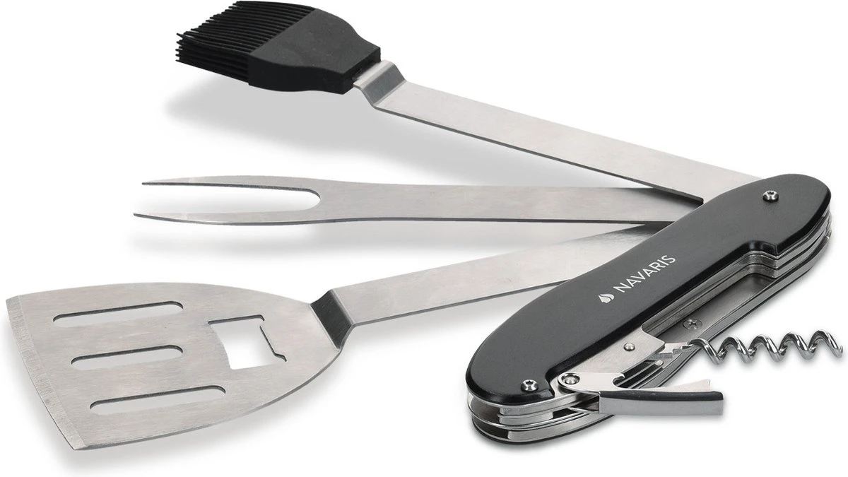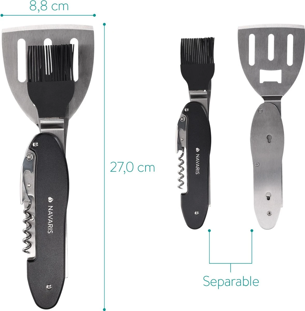 Ben le boulanger avec ce multi-outil Navaris 5 en 1, à utiliser pendant et pour le barbecue. Qu’il s’agisse de retourner des hamburgers ou d’ouvrir un verre de vin, ce couteau de cuisine suisse peut le faire et l’a.UN COUTEAU SUISSE