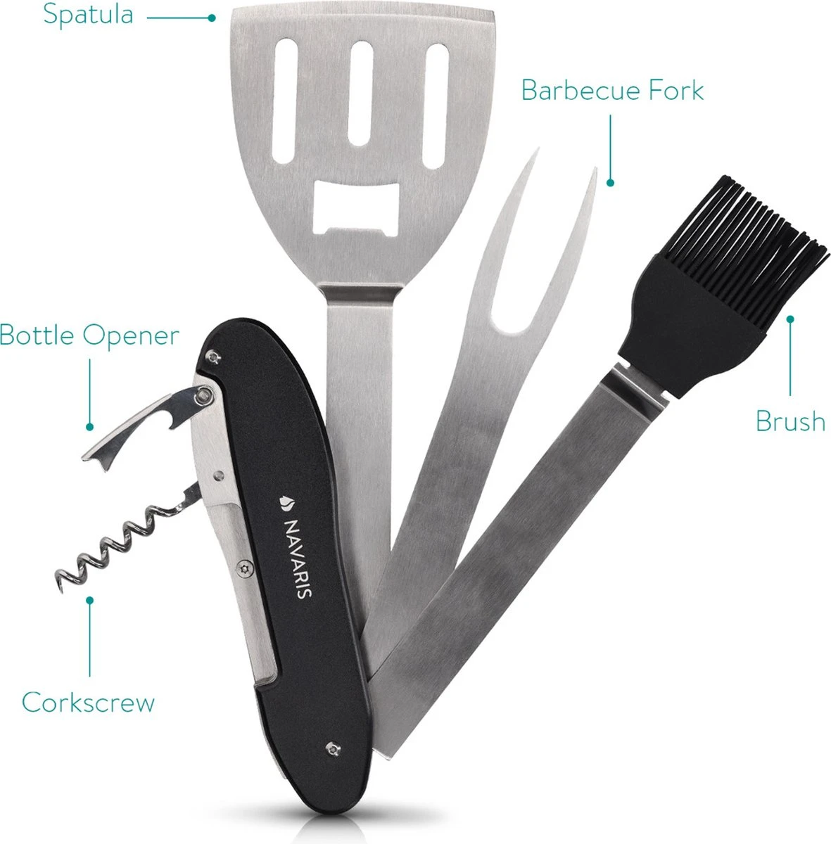 - MULTIFONCTIONNEL : Vous avez tout sous la main pour vous offrir, à vous ou à vos invités, une viande bien cuite. Le multi-outil peut tout faire, de l’ouverture d’une bouteille à l’arrosage de la viande pour un brunissement ou une cuisson supplémentaire.