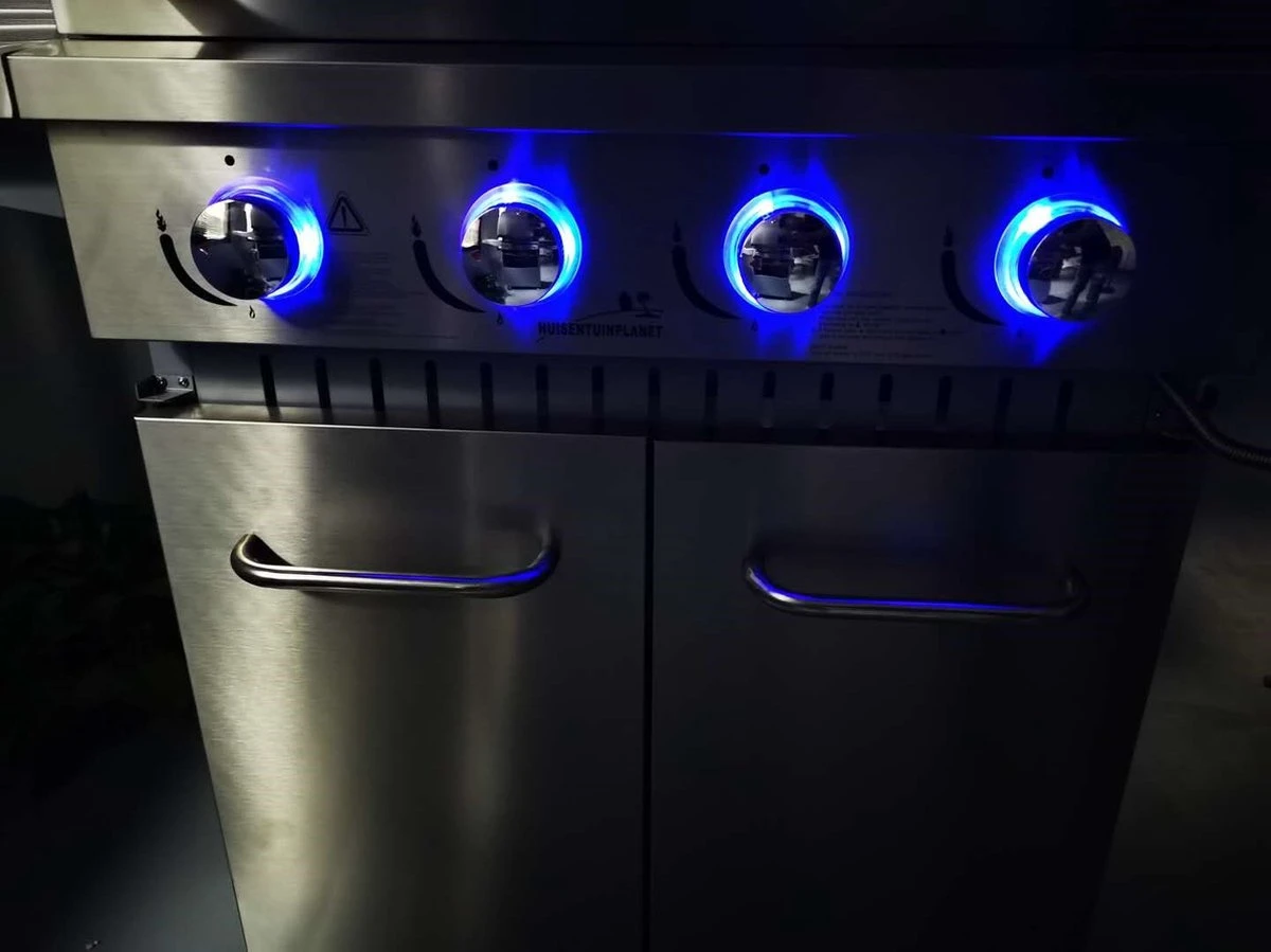 Le barbecue est fabriqué en acier inoxydable de haute qualité avec des accents brillants. Les boutons du gril sont équipés d’un éclairage LED , pour une ambiance supplémentaire dans l’obscurité. Au-dessus de la grille en fonte se trouve une grille pour maintenir les plats au chaud, avec une lèchefrite. Le gril est extrêmement adapté à la méthode indirecte, pour cela vous allumez un ou deux brûleurs et éteignez le reste. Placez la viande sur la partie qui est éteinte, elle cuit lentement et la viande devient merveilleusement tendre. Vous pouvez garder un œil sur la température grâce au thermomètre intégré dans le couvercle.